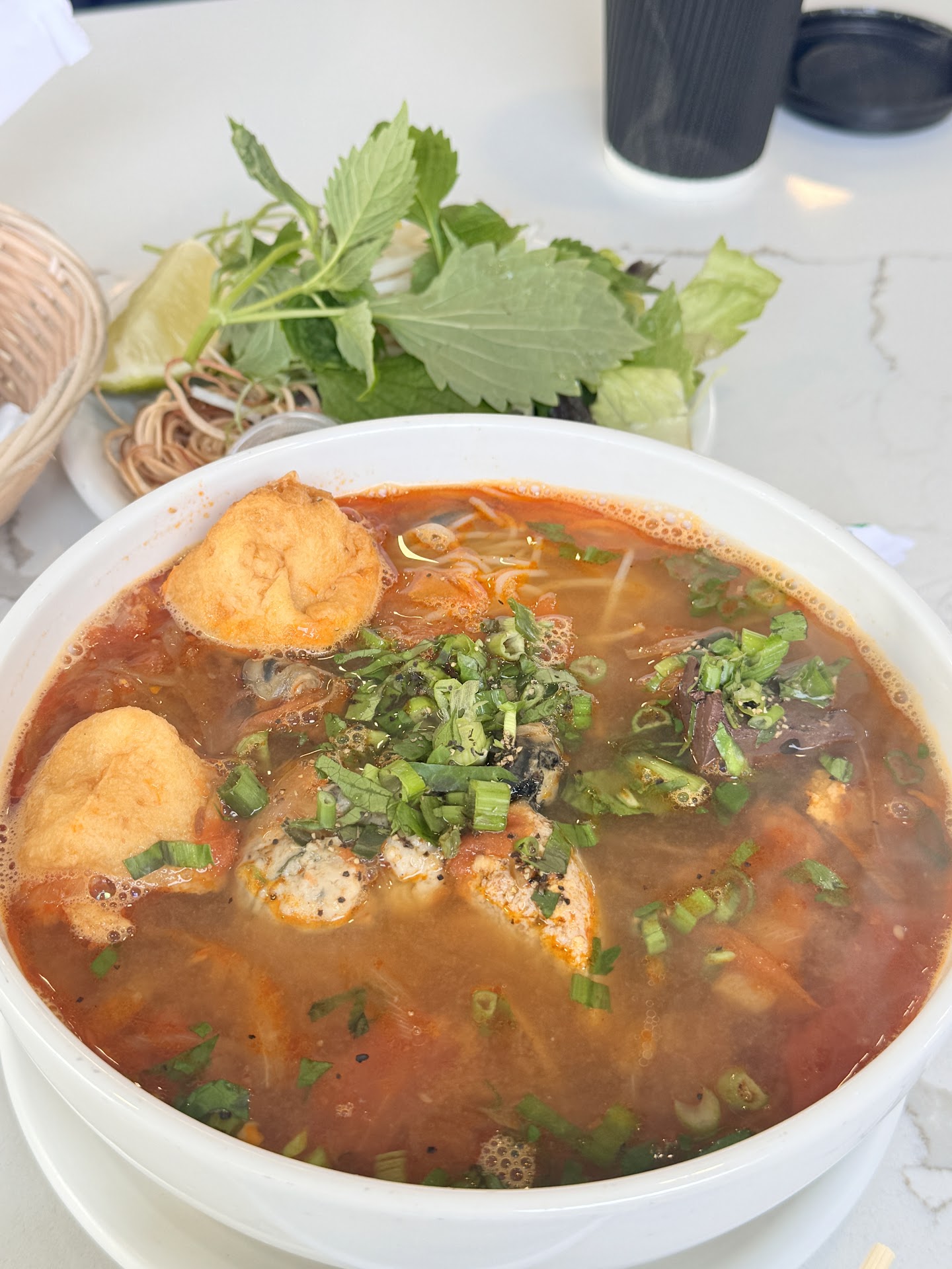 The first time, I had the Bún Riêu, fried belly salmon and fried squid. It comes with a green sauce that’s sour and spicy— really good. I wasn’t a big fan of the fried squid BUT the salmon belly is to die for! I don’t know any other place that has this dish. The Bún Riêu— which is crab meat and crab paste with rice noodle soup and you can add snails as an option, which I did. The dish super flavorful, balanced between the sweetness from the tomato, shrimp and pork and saltiness from the crab. It has lots of toppings and they nailed the broth 💯