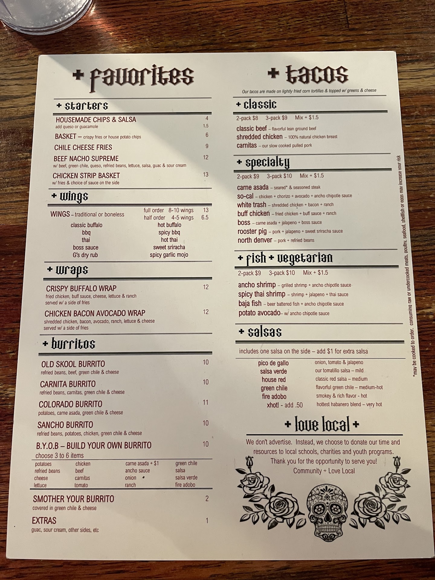 Ā Ā Ā Read moreI was in there about five years ago and was not impressed. However I happened to be in the neighborhood & thought I'd try it again as I was hungry. I walked in and stood there for a few minutes there was no one in sight so I seated myself. A few minutes later my waitress came out and said "she was cleaning the bathroom." I almost got up and left on that comment. Against my instincts I said I'd would like to eat in & ordered a beef & bean burrito which was served on a plate but it was wrapped in aluminum foil like a handheld burrito. There was no lettuce, no tomatoes, no sour cream & of course no guacamole. I had to ask for a fork & I never saw my waitress again until I asked for the bill. I think $10 plus tax for a handheld burrito that is only mediocre is outrageous. You can get BIGGER, BETTER burritos all over North Denver for five or six bucks, that are more authentic with better service. I won't...