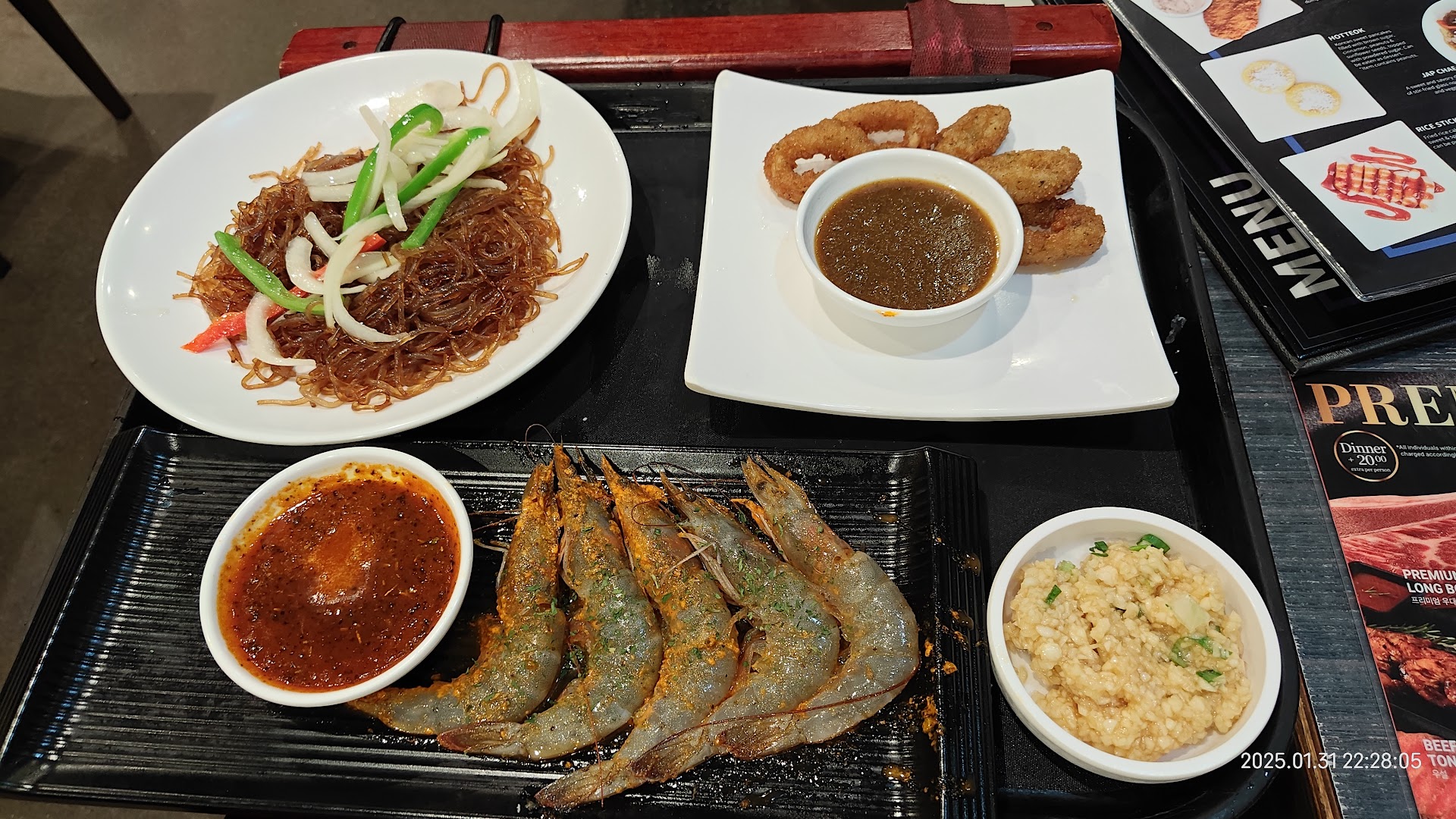 Luckily, some of us already know what we would like to order and ordered then. We also asked for utensils, side dishes and sauce, as there were none. After 10 minutes or so, only 2 dishes out of the 6 we ordered came out. Okay, they might come out later. Never did. As well as the sides, sauces, utensils, AND tongs to handle the meat.