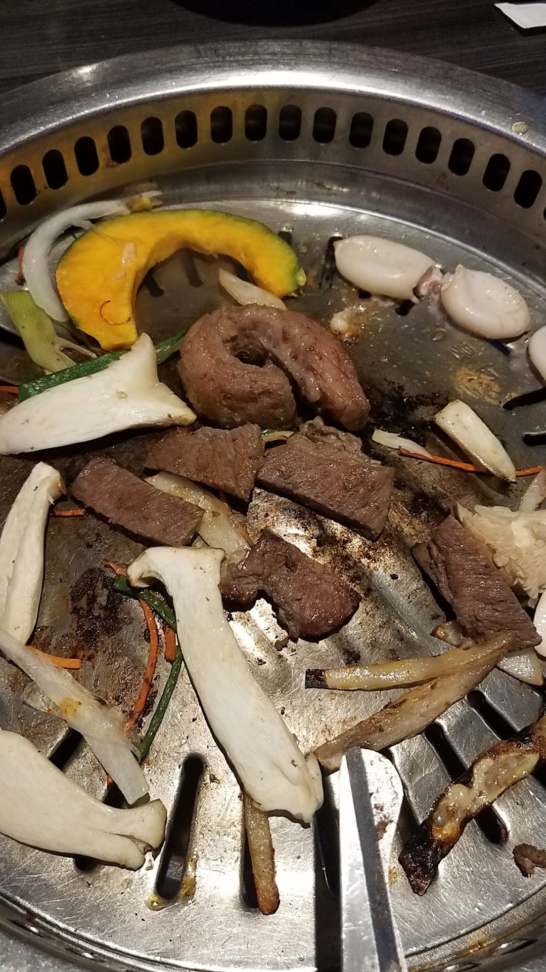 We track someone down to help us with our situation and that person said they'll get our waiter or someone to take our order. Never happened. One person FINALLY came and asked what we would like to order after another 10-15 minutes. We told him utensils, sauce, salad, tongs napkins, drinks, ordered more meats and stuff as we never got the full order from the previous interactions with the waiter. After ANOTHER 10 minutes, we finally got utensils and tongs after over half an hour of waiting, as well as waters only and only 3 dishes out of the 8 orders. We ask where the sides to go along with the food. They'll get right back at it. After waiting for awhile, they only brought out Kimchi and nothing else. We kept asking for salad and napkins every time they came by, never received either of those.