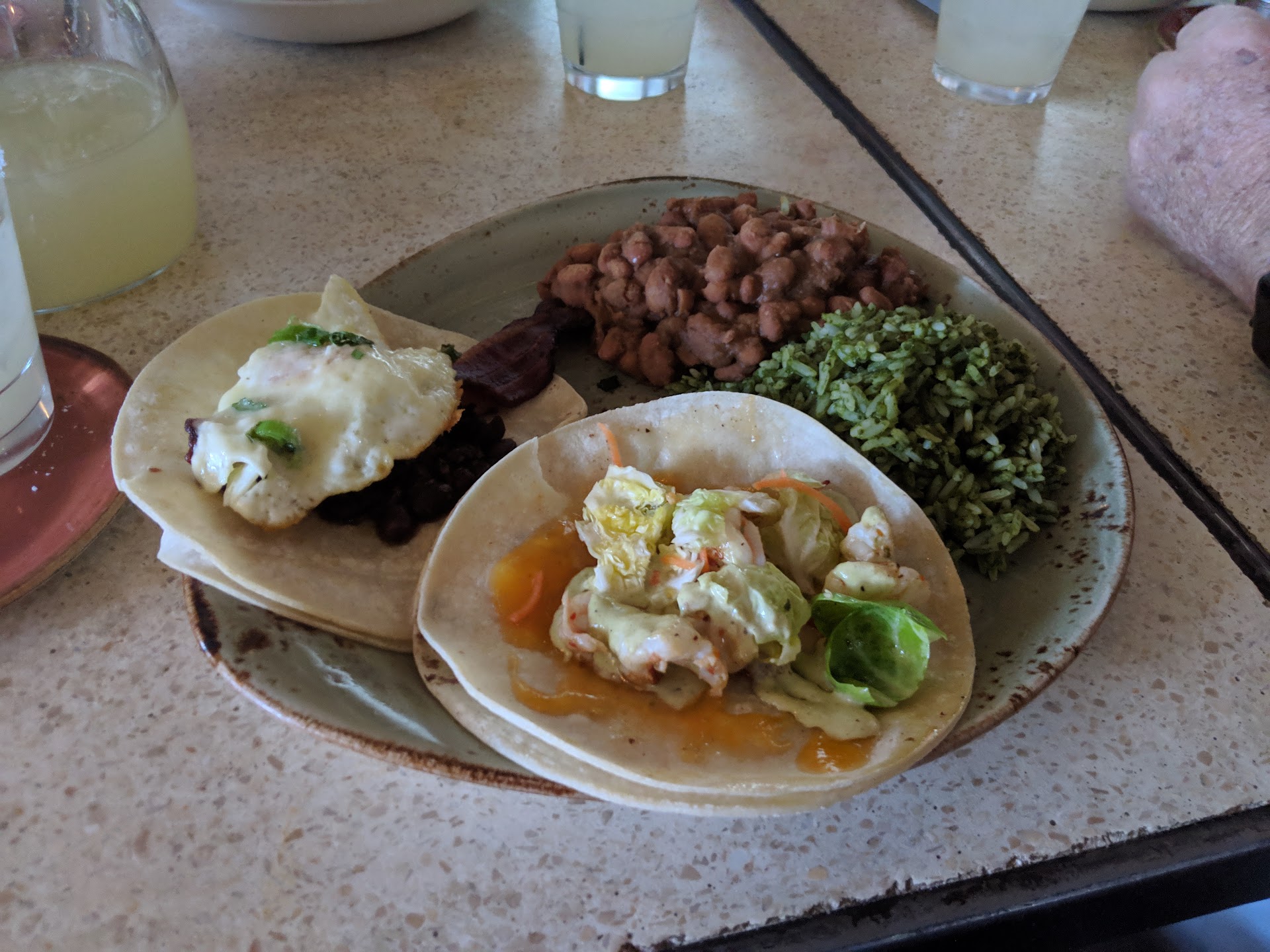 I had the happy hour tacos because I couldn’t get real food at 2:15 in the afternoon. For almost $30 I got three tacos the size of my palm. They were so tiny so tiny. I thought they were for toddlers. And guacamole with chips that is outrageous for portion size. Those tacos were bomb though.