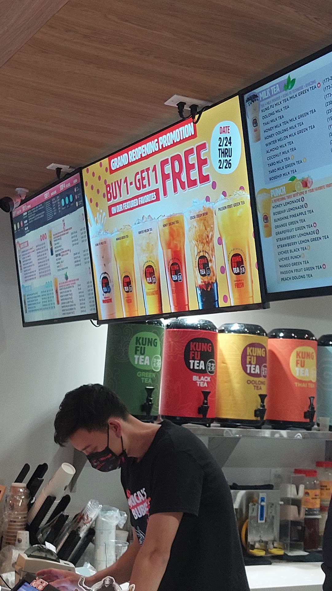 Read moreWelcome Kung Fu Tea to the OC! With many trail blazing bobba tea shops that has already set up shop over the years, it's late to the hustle but good enough to be another option. Go off peak to avoid any lines and parking frustration in this tight pagoda st plaza because the stress is not worth it. Those that know KFT from their Las Vegas spot, this one does not show cool old school kung fu flicks on the tube. Also ask for more tea and less sugar, because it tastes better and your dentist and doctor will give...