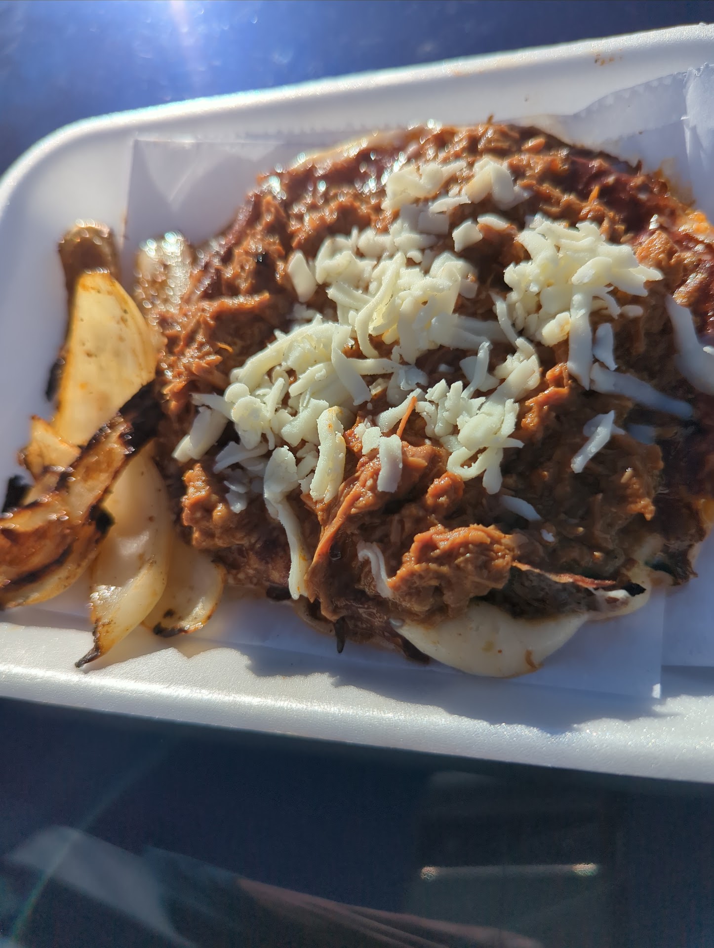 My first time here. Volcan con birria is a must try. Perhaps try that before ordering more. You might want more of that. Torta was good. Hot sauce and salsas were bomb. Service was A+. Be prepared to wait 20 min for your to order made stuff. Eat it ASAP so you get all the crunch. Don't take it on a long drive. The peanut extra hot salsa is unreal. And the hot sauce they have on the truck. Just ask. I can't wait to try papabirria (baked potatoes w birria)!