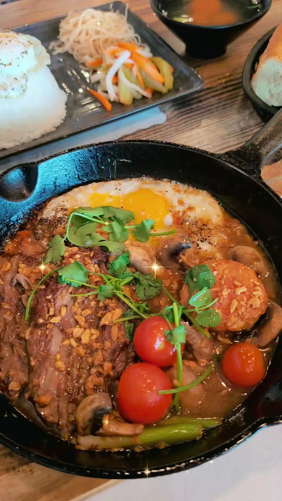 There aren't many better values in Orange County when it comes to Vietnamese food. For my dine-in experience, I absolutely loved that I only had 6 choices of dishes to order from- there are 3 variants of Banh Mi, the priciest costing I think $6.95 at max, and then for a larger appetite, you have 3 meal-size cast iron skillet items- Crispy Pork with rice, Steak and Shrimp w/ Rice, or Baguette Bread with Steak, where you dip the bread into the delicious sauce of the skillet. Everything looked good, and you can generally be sure that the less items on a menu, the more that they can execute those items well.