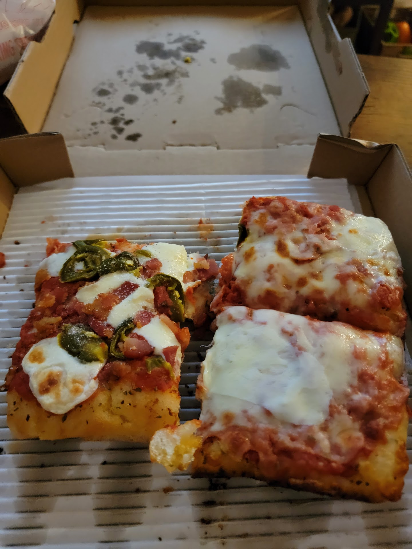 Ā Ā Ā Read moreThe whole entire experience was just horrible. We were told our pizza would be ready in 15 mins... Sat around for an extra 15 as it wasn't ready. Then they didn't have the right size boxes so they split it up into a bunch of little boxes and then we get home and I have never seen so little toppings. There was HARDLY ANY CHEESE on either pizza.. I could barely find the bacon on my bacon and pineapple pizza. The whole thing just tasted like sauce and a little bit of over cooked cheese. And I think they forgot to put sauce on my kids cheese pizza...Honestly Little Caesars would have been better. Never coming back. Almost $40 for 2 cardboard pizzas... And don't be confused by the picture. The brown parts are not meat... Its...