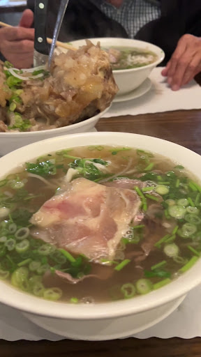 Read moreWent here at midnight after my 10 hour shift. I was tired and hungry wanting pho. This place opens 24hrs but accepts cash only-thats fone. I ordered there #14: rare steak, flank, tendon, and tripe with a side of pork and veggies eggrolls. The egg rolls tasted fresh and crispy. They were delicious, reminded me of my momma's eggrolls (just missing the taro). It didn't taste like it was pre rolled and frozen. The pho came out about 10-15 minutes after ordering which is a bit unusal for a pho place but normal otherwise. It was good. The broth was clean and the meats were well graded. Sometimes, you get bad quality rare thin sliced steaks but this place was good. Everything had a clean taste to it with a balance of rich and savory. The herbs were fresh as well! That night, they played music pretty loudly for a pho restaurant it consisted of Hispanic, b-boy funk, and some Vietnamese. It was a louder environment than I am used to at a pho restaurant but considering the hour I was there, I'm sure a lot of the customers there were trying to either sober up or filling up before having a night out or ending a night out. I'm definitely keeping this spot as one of my pho places. I just really enjoyed the clean tasting proteins and appreciated the love the broth had (it didn't taste like a bunch of ingredients thrown in 30 minutes, it tasted of love and time with simmering, melding the ingredients together and bringing out the flavors of each ingredient.) I look forward to eating here during the day. Yes, pho is an any time of the day thing for myself. Oh! And the bill was about $40.00 and some change for: one regular #10 rare steak pho (it's size regular or large), one regular #14 (my combination of rare steak, flank, tendon, and tripe), one #2-eggrolls (you get 5 peices and lettuce to wrap it up), and a side of steamed rice to go. Water is...