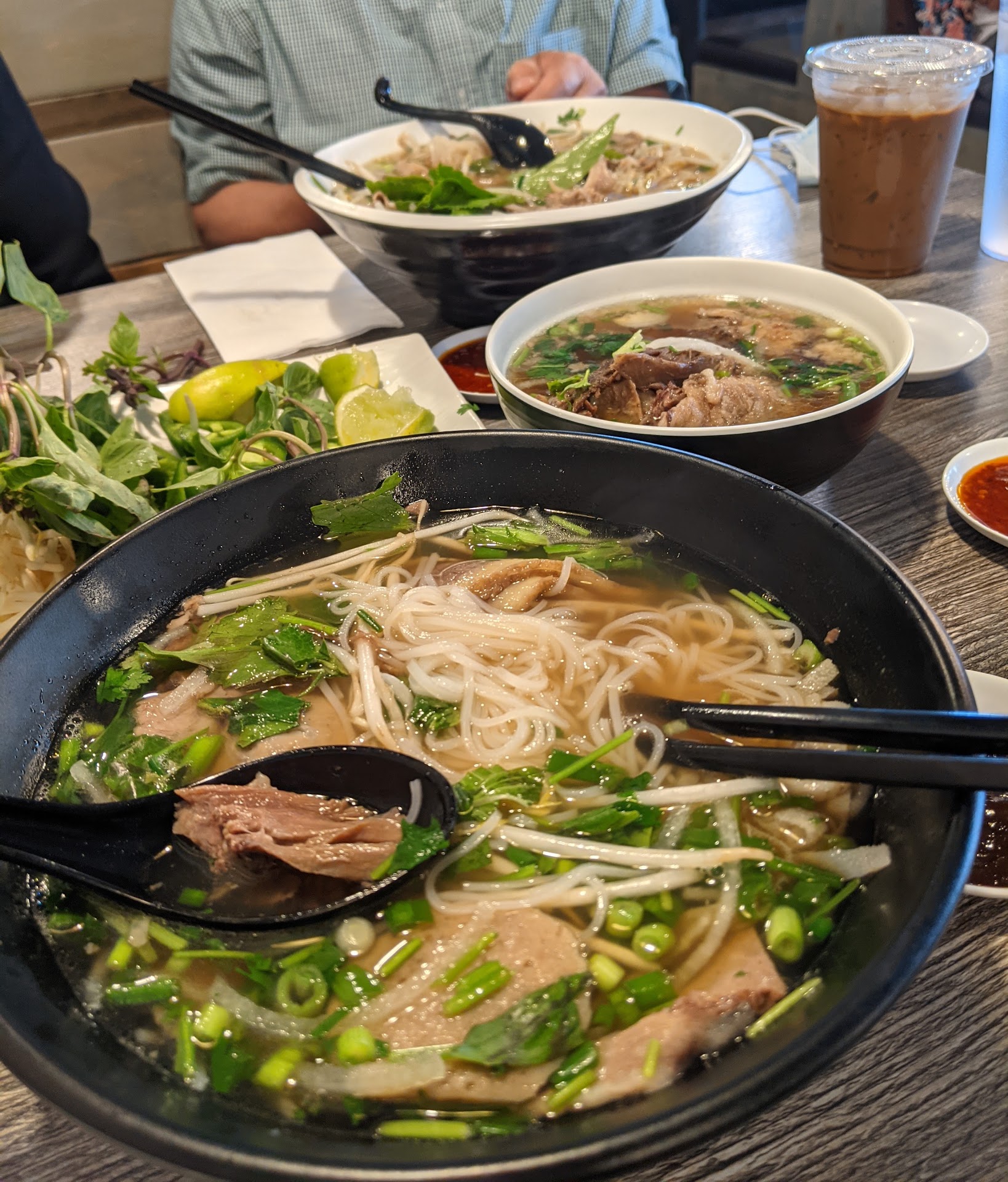 Food: When I go to Vietnamese restaurants, I usually get rice dishes. Since we were looking for pho, I got it my first time here and it was totally worth it! Iām sure their rice dishes are delicious, but I probably will only get pho whenever I come here. They donāt have a Pho Dac Biet (a special combination with a wide variety of meats). Instead, you pick a medium or large, and choose 4 types of meats. Additional types are an additional cost. My first time here, my brother got the large and couldnāt finish it. My second time here, my dad got the large and finished it. My third time here, another cousin got the large and finished it. I get the medium. It gets me full and satisfied, so Iām sure the large would make me feel stuffed like a turkey. The nice thing here is you can also order oxtail on the side, which I highly recommend. If you do order it, the medium pho is probably more fitting. The pho here is super flavorful, they use good quality meats, and, again, I highly recommend getting the oxtail on the side. Depending on how much you eat, a single order of the oxtail can be shared from 1-3 people I would say. Lastly, they have hot tea for free on request here!