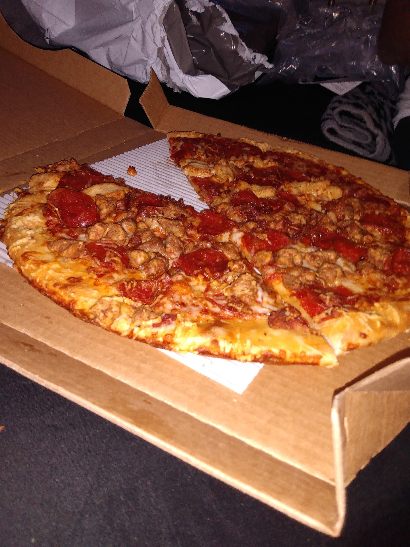 Read moreI do not complain, I am never picky, and I have never asked for a refund before. This was my very first time for all three. We were staying at the Marriott 1.4 miles away, so we ordered a pizza and a drink around 8:25 thinking it would take 20 maybe 30 minutes to get it. At 9:30, the website said our pizza had been delivered.... and there was no pizza insight. So, we called the restaurant to see what was up and get an ETA. (Mistakes happen, I get it, maybe they went to a different hotel-- no big deal.) The sweet girl at the front answers and says she will ask the manager. Five minutes later, another lady gets on the phone and is fairly short and rude. She says the driver said he has already delivered the pizza, but she is going to hang up on us, call him, and then call us back. We hang up. Two minutes later, the delivery guy FINALLY shows up. I called the store to let them know that he's finally here, but we've been waiting over an hour and we are hungry and frustrated (remember, this Pizza Hut is just over 1 mile away from us) and we would really like some kind of compensation. Manager lady gets on the phone, says she's already refunded us, tells me to have a good night, and hangs up on me. All in all, crappy service-- inconsiderate, untimely, rude, and unfriendly. Would NOT recommend until they figure out how to make their staff more productive. Good luck to this pizza hut, I hope your management can get this...