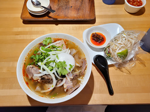 This restaurant specialized in the central region of Viet food. We came there twice in two days to try different dishes. The host gave us warm welcomes both times, he intentionally chose a good table to give us some space from others (when he could). On our first day, we tried vegan yellow rice noodle #15 and vegan lemongrass rice noodles #14. Didn’t like #15, just a note to their chefs: there was a strong flavor coming from either (1st guess) too much of vegan mushroom seasoning, it likely gave this flavor in more concentrated broth or in fried rice if too much of it, and/or (2nd guess) quality of the noodles. I personally loved #14, the broth and other ingredients was great, best lemongrass Hue vegan noodle soup I had ever had (there might be mushroom seasoning in this also but not detected maybe cuz in clear, not concentrated broth), liked their fresh herbs/veggies. On our 2nd day, we tried and liked both #17 jackfruit salad (too little of jackfruits but still enjoyed other fresh ingredients in it) and #23 salmon with crab, shrimp cake soup noodles. I couldn’t find any crab in the bowl and couldn’t taste any crab in their shrimp cake either, it was still great though. Just being a little critical for their chefs to be aware. Overall, we liked our experiences,...