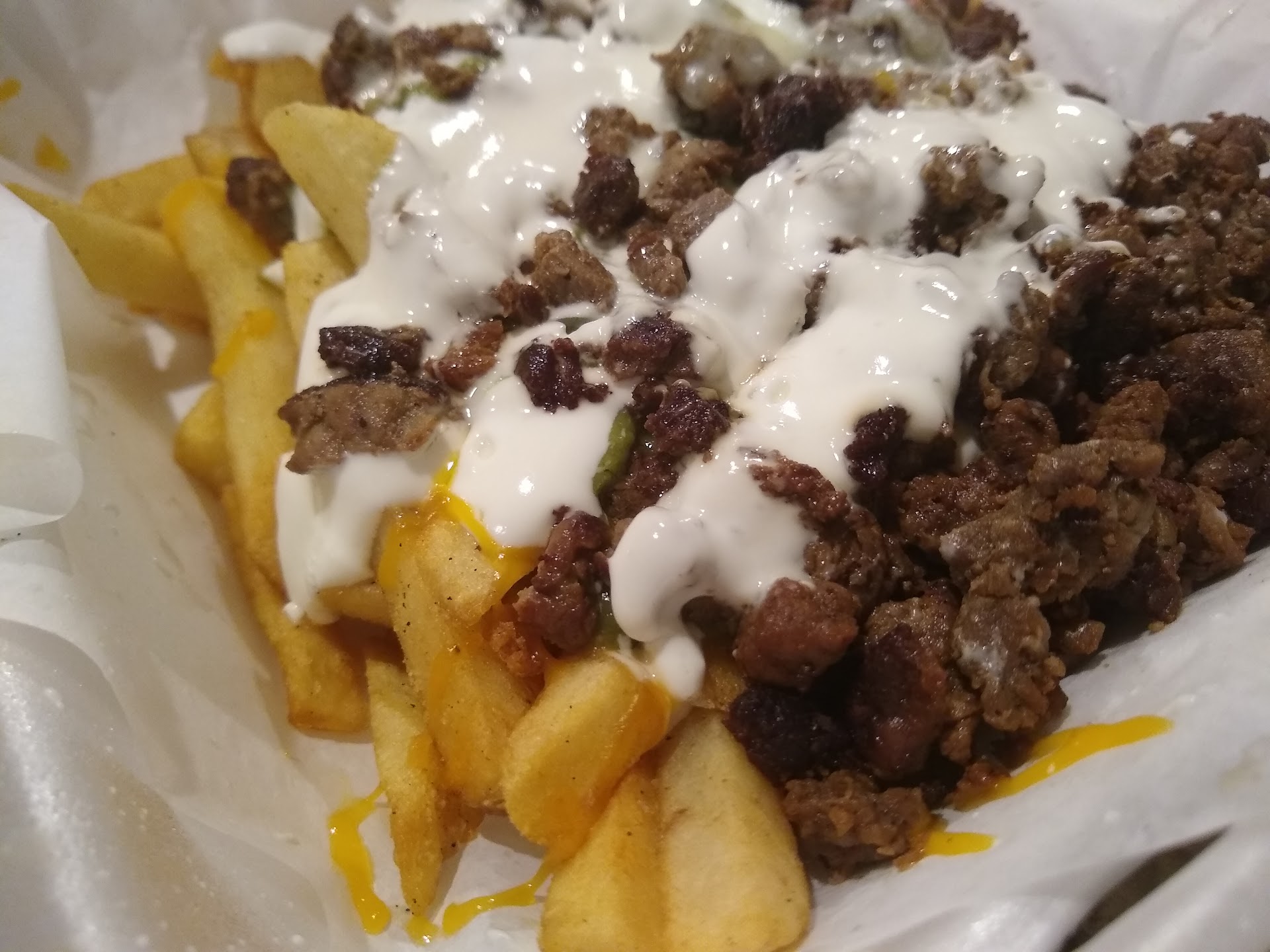 Read moreThe food tastes great, although when I ordered, I specified that I only wanted about a Handful of chips and mostly meat and that I would gladly pay extra, as I live a MOSTLY Carnivore lifestyle. I received a DECENT amount of meat, but about 2.5 handfuls of chips, probably fried in that toxic "vegetable" oil most places use to save money, as it's reusable, unlike high quality beef tallow, or even ghee or butter. The food tasted great, looked very appetizing and smelled delicious. It's a smaller Sabrosada, but was still nice at the time of night I stopped by, playing music from outdoor speakers, warm ambient lighting, and your standard wire mesh round table with umbrella for outdoor seating. I give 4 stars across all categories because for food and service, I didn't get exactly what I asked for, but it wasn't horrible. Atmosphere gets 4, because it was completely empty when I got there and everything felt a little "tight". Less seating, more spacing would be perfect. Fix those issues, and it goes up to 5 🌟 across...