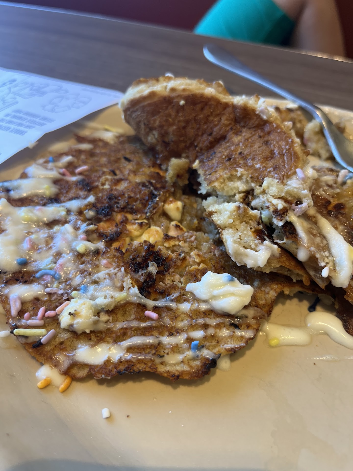 My daughter has allergies, one reason weâve come here. We ordered a full order of Vegan Bliss Pancakes (I have pictures of what they should look like based off other Snooze locations weâve been toâ weâve been loyal customers of Snooze since 2016). Out come these tiny/flat pancakes that have what look like chocolate chips on them â nope, thatâs just burnt crap from the grill. We asked to do their âprideâ special pancakes with sprinkles and sweet cream butter, but with the vegan batter (due to anaphylactic allergies) â they charged us 4 dollars extra for burnt, thin, nasty looking pancakes because they added sprinkles (that werenât even the same as the pride pancakes) and a different type of butter â they said it was because of their system, that we were charged extra and they refused to take it off â so, allergy tax because of their âsystemâ. $17.25 for some nasty pancakes that were burnt, pictured below. The âfruitâ on the side was literally one full strawberry cut into 4ths and about 8 blueberries.