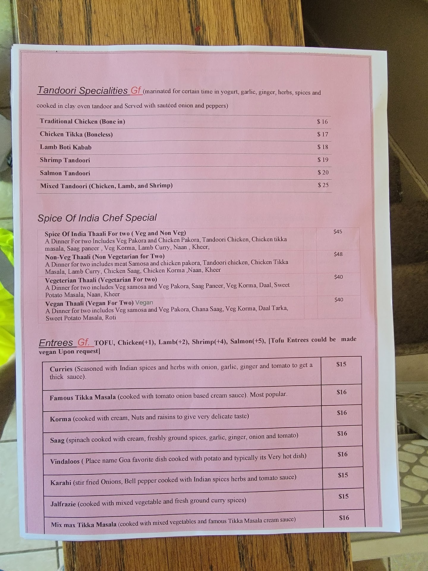 Our visit to Colorado for the Memorial weekend led us to an unexpected culinary delight at Spice of India Restaurant. With an impressive 4.9 rating from 1400 reviews on Google, our curiosity was piqued, and we decided to see if the experience matched the hype. Feeling a bit unsure about what to order, we turned to the owner/manager Ram for recommendations. Ram's confident and gracious demeanor was evident when he offered to cover the tab if we didn't enjoy the meal. With this assurance, we eagerly placed our order. We started with the Gobhi Manchurian as an appetizer, which was perfectly crispy and seasoned. For the entrée, we opted for Lamb Roghan Josh, Kadhai Paneer, Garlic Naans, and rice. The Lamb Roghan Josh was exceptionally tender, and the flavors were simply delectable. The Kadhai Paneer was equally appetizing, making our meal thoroughly enjoyable. Skeptical about the Mango Lassi due to past disappointments with mangoes in the US, we decided to give it a try on Ram's insistence. To our pleasant surprise, it turned out to be one of the best Mango Lassis we've ever had in the US. Beyond the fantastic food, Ram's hospitality stood out. He was incredibly helpful and even offered us suggestions for our weekend hikes, adding to our positive experience. Spice of India Restaurant truly deserves all the praise it receives. The excellent food, combined with the awesome service, makes this place a must-visit. The high rating is well earned, and we look forward to returning on our next trip...