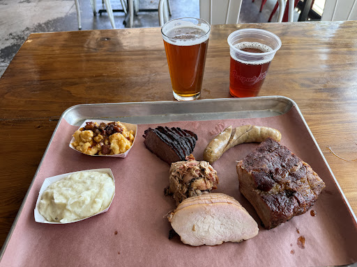 Will not be back. My husband and I thought we would give this place a try. Boy were we wrong. I read reviews and noticed that the poor reviews said a lot of the same things, but we tried anyway. Well I'm here to let you know that everything you have read in the poor reviews is true. First, I ordered online, as that is really one of the only options at this time due to Covid-19. When my husband arrived, there were people seated at the bar taking shots. My husband had to wait and wasn't acknowledged for well over 10 minutes as the staff seemed too preoccupied with serving shots of pickle juice and whiskey to the "patrons" at the bar as they hooted and hollered about "Oh man that's going to make me vomit". Additionally, at this time that would seem surprising because patrons really aren't allowed to be dining in any restaurant or bar due to the restrictions for Covid-19. Anyway, once he was acknowledged, the staff indicated they had no orders for my name or his name. He provided the check number and the individual still said they had nothing. Frustrated, my husband waited and waited. Finally after ho humming around, the individual found our order and my husband brought it home. This is the part you really need to listen to! (I'll say it one more time for the people in the back) YES the service there really is askew. And YES, every review that you read about poor service, wait staff not doing what they're supposed to be doing, disregarding customers etc. is TRUE. Believe it! And all the "conversations with our staff" you're seeing the owners post about as rebuttal to the negative reviews posted outlining these issues clearly are not having any effect on anyone as this is clearly a norm and just how they are choosing to run their business. Not because they actually want to address the issues and make sure they don't happen again. But to each their own. Secondly, the food. We are a family who loves our BBQ. We hail from Texas and so we have tried all kinds of barbecue from all kinds of places. So of course we ordered something of everything. We ordered sausage, pulled pork, turkey, brisket, ribs, baked beans, cornbread, potato salad and mac and cheese. I would go out on a limb and say that only the ribs and the pork are actually smoked. Even though they insist that (and I quote) "We smoke all our meats on two big Ole Hickory smokers for literally hours". I'm not buying it. The turkey was dry, and was more oven roasted than anything. No hint of smoke at all, just a dry rub that was used to impersonate the quality of actual smoked meat. The ribs were dry and overcooked. They didn't have much meat on them. The sausage was not smoked at all. Honestly, it reminded me of a sausage you would get from Costco at the end of the frozen food section as a sample from the little sample person in the blue aprons who just microwaved it. Really disappointing. The pulled pork was okay and the brisket was mediocre at best. But these were the only two meats we even found palatable. So instead of completely wasting our money, we conceded and ate them. Additionally, the corn bread was burnt burnt burnt. It was so incredibly dry. The baked beans were good. Yes, I'll give credit where credit is due. The Potato Salad. My daughter, my husband and I immediately spit out the potato salad. I have no idea how to even describe it. It was quite possibly the worst tasting potato salad I have ever had, ever. It almost tasted like it was spoiled. The BBQ sauces were okay. There were really only two that we entertained putting on the food we were eating. That was the Honey Badger BBQ and the St. Louis Sweet. Overall, we were highly disappointed. It was extremely expensive and not worth the money. There was a review that I read on here that I could not agree more with in regards to the food, and it was that this place was a shame because out of all the food they ordered, they only ate about 25% of it. The rest went in the trash. And honestly, as harsh as it is, that's probably...