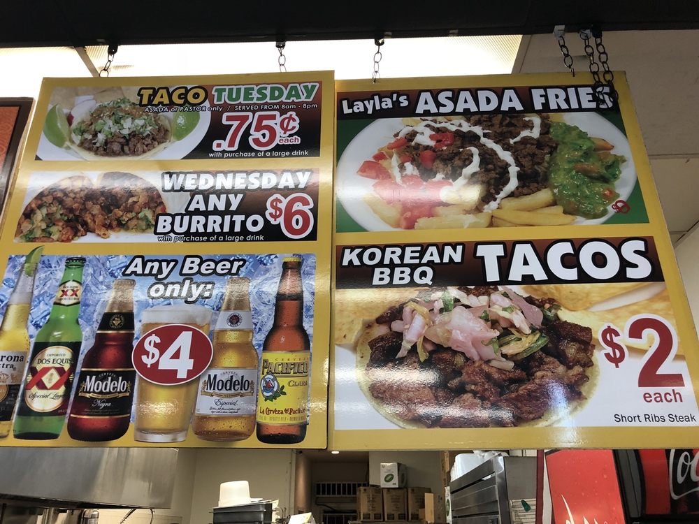 Read moreWe were craving tacos and dropped by after yelping what's nearby. We couldn't find it at first but later realized it was because it's tucked into the corner of the Chevron and Donut Shop plaza. Parking was easy to find. We saw they have a Taco Tuesday $.75 with purchase of a large drink and Wednesday $6 burrito deal going on.