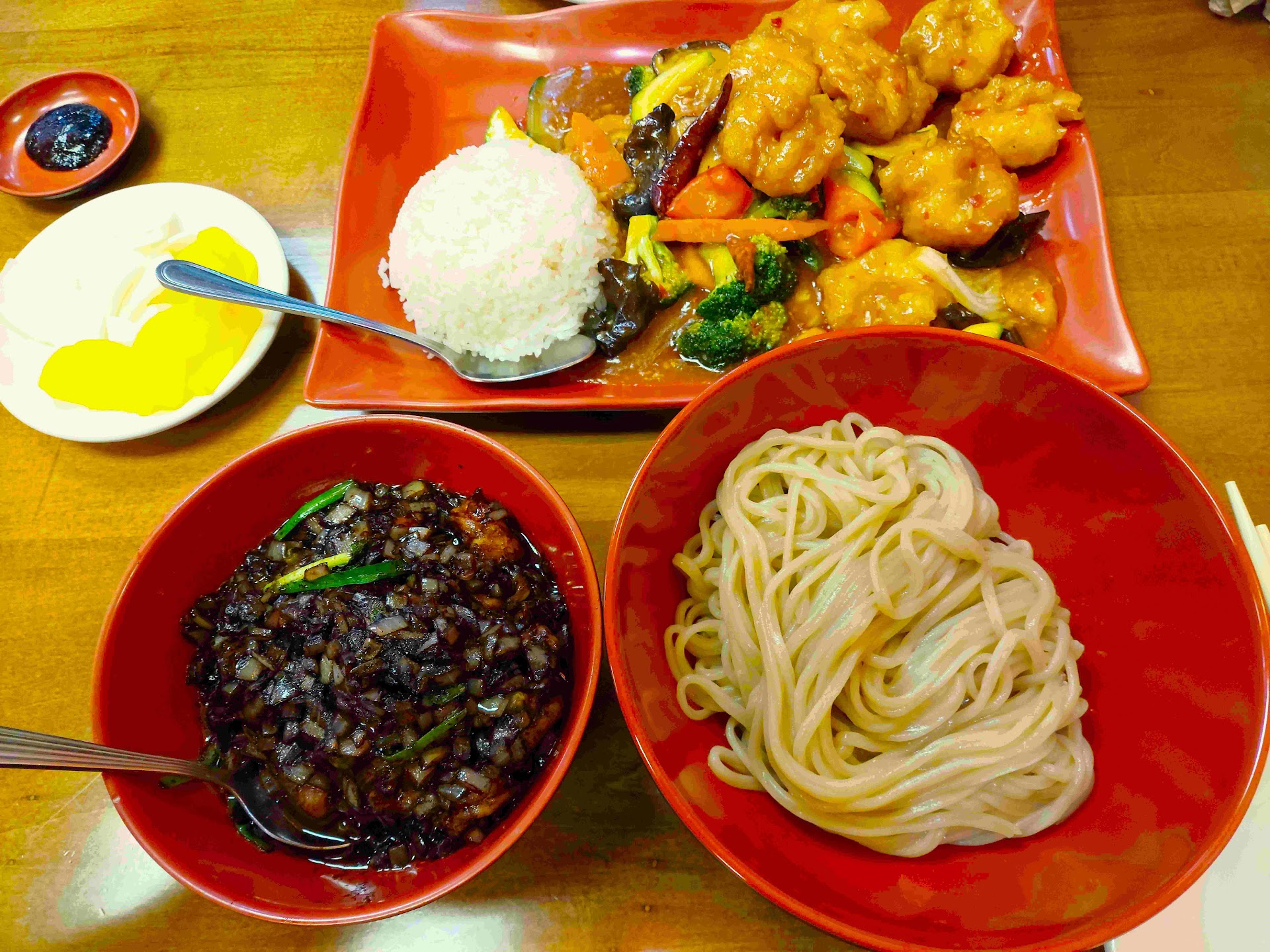 Personal favorite is the sea food dry jajangmyeo 海鲜干炸酱面, hard to find any place else in Denver area come close to its taste. Specially when the owners husband is doing the cooking. Chili pepper Shrimp also good.