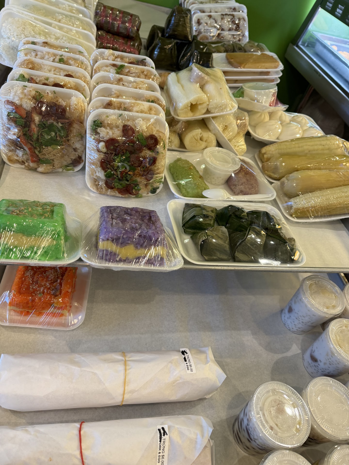 Read moreGoi cuon (spring rolls) are good! The vermicelli/rice noodles are not dry and they usually have a variety of options and they are generous with lettuce and mint: thom/shrimp only, thom and thit/shrimp and pork, and bi cuon are my favorite. Coffee also is very strong and has good flavor. You cant miss the banh cam duong but they sell out fast. Actually come to buy your food before 2pm if you want a large selection and variety, otherwise most things are sold out by then. They open at 5am but when when I came around 7:30am everything was hot and some items were still being brought out so I think they make everything on a rolling basis and the perfect time to come seems to be 7:30/8:30am. Sometimes it is frustrating that things sell out fast but there is a reason they are always selling out and at least then I know tomorrow will be...