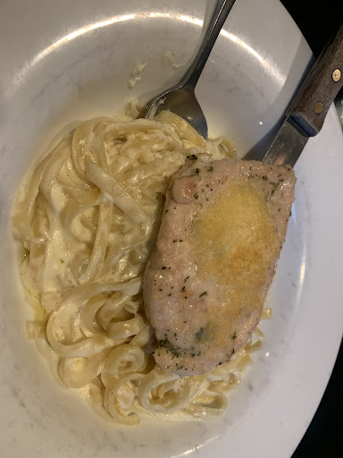 HERE is what’s really the most disappointing experience: 3/5 of us ordered the “Parmesan Crusted Alfredo”… does the picture I’ve provided have chicken that looks “crusted” in any way, shape, or form? This is literally just cheap grated Parmesan sitting on top of the chicken. And the piece of chicken itself was SO BLAND. It tasted as though there wasn’t a single sprinkle of seasoning on it. We had to LOAD our dishes with salt and pepper for it to even taste decent. Paying $21 for this felt like a huge rip off. And it was rung in as simply “Alfredo pasta, add chicken”, which makes me wonder if the item we received is even what we ordered.