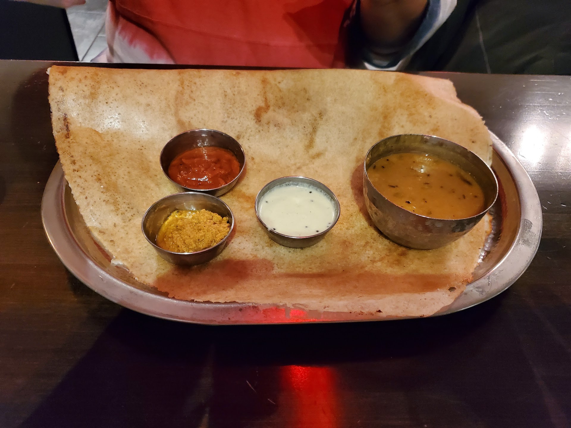 Read moreMy bestie and I were so excited to eat here based on the great reviews. Unfortunately, we could not have been more disappointed. My friend has some food allergies which she told the waiter about, even handing him a piece of paper upon which was written what she couldn’t have to ensure that he understood. On that short list was peanuts. He recommended the masala dosa. It was great…except that there was a side of peanut-based chutney! She has a mild reaction. He never apologized. We ordered some plain dosa and were served the exact same thing as the masala dosa but charged a dollar less. When we repeated that we only wanted the dosa and nothing else, they put the chutneys aside. Ooookay. Hmmmm. So, a plain dosa is $11.