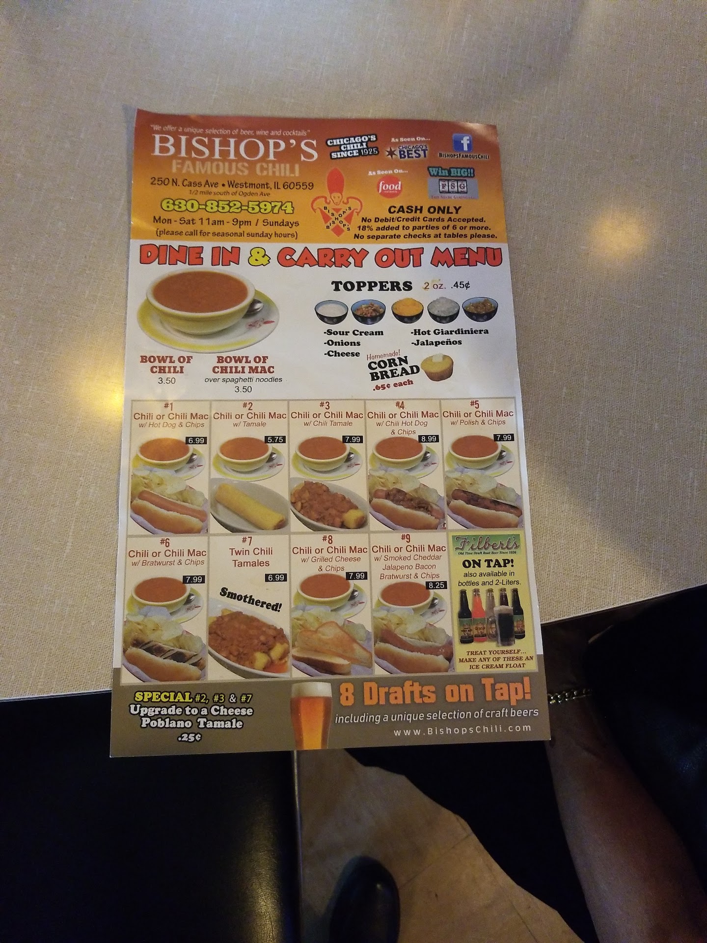 Iāve been eating Bishops Chili for 55 years. I grew up by the original restaurant on 18th & Damien in Chicago. I was in the Westmont restaurant today, sitting at the bar watching the Bears game. I wanted to order a quart of chili and eat it there. The size of their bowls wouldnāt feed a ten year old. I was told I couldnāt do that. I even had my own bowl in the car that would hold the whole quart. I ended up not eating anything and left shortly after that. What kind of business refuses sales? They lost three lifetime customers, as I was there with friends from the old...