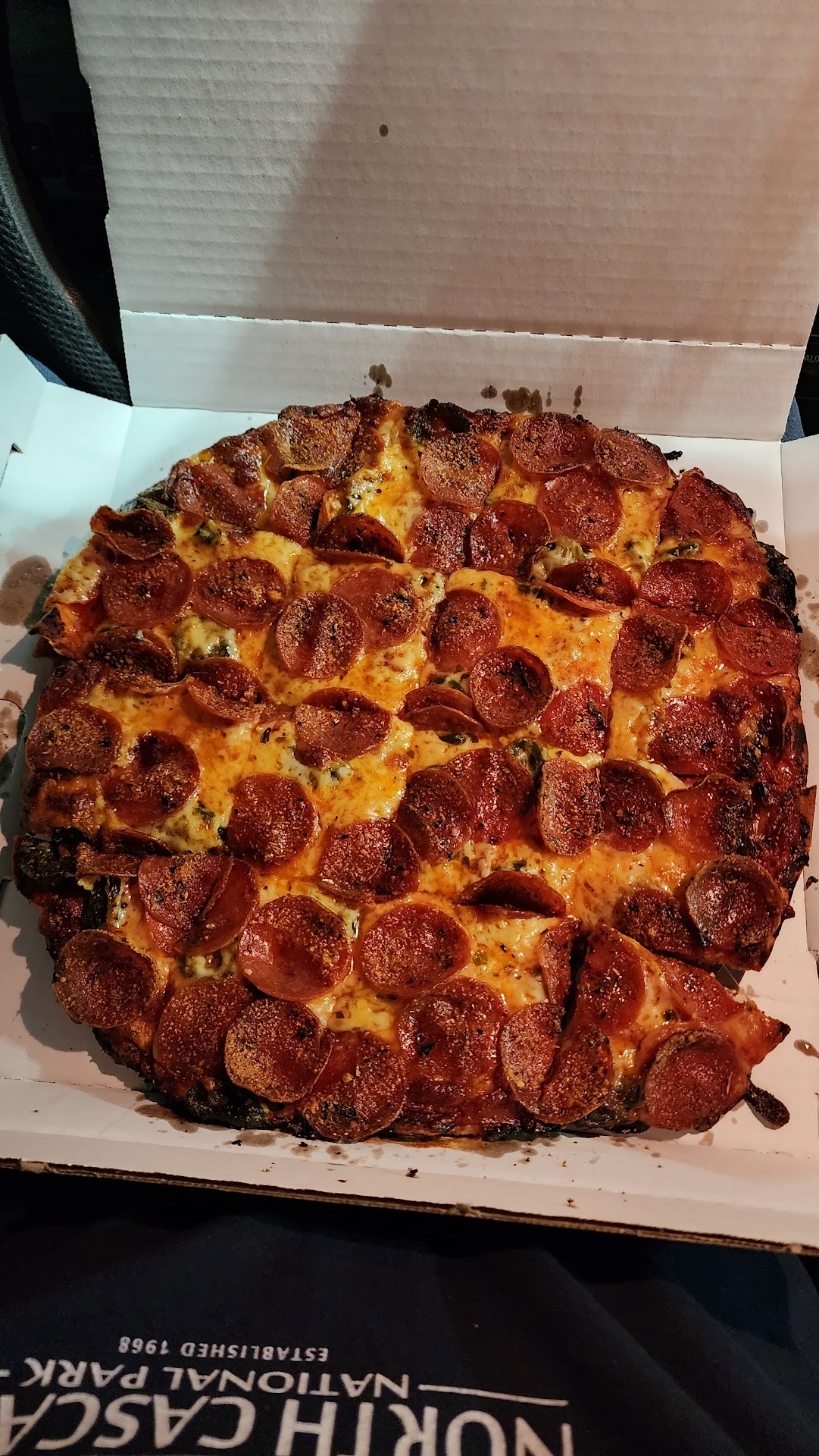 DoughDaddys in Westmont. 12 inch thin crust pepperoni and jalapeno pizza(candied jalapenos). This was tavern style crust that was extra thin and perfect crunch on the ends. The middles did get a little overwhelmed by the content but we will ignore that cause this was a masterpiece. Slightly greasy from pepperoni content. Pepperonis, on top and charred to perfection! Cheese, again.....charred on the ends which made some carmelization on the cheese and ends of the thin crust that would make burt Katz come back from the dead to try! Sauce was tasty and just enough put on the pizza. Seasonings on top to put it over the top. The candied jalapenos gave it a sweet and spicy contrast that you'll be dreaming about until the next visit here. If you don't like salty pizzas then this is not for you. If you do enjoy places like Vito and Nick's then this is right up your alley. I have to say and honestly will say that after trying over 750 pizza places in the area I've never had more flavor on a pizza ever! A long time friend of mine John J Jackson told me I had to get out here asap to try this one cause it was one of the best pizzas he ever had and he was dead on with that statement. Even though I made the duda50 already.. this would be in the top 10 for sure and would be ahead of places like Kim's uncle pizza and zazzos that are nearby. So, for those of you that are looking to try Kim's uncle and don't want to wait. I suggest you hit doughdaddys before he gets slammed as well cause this is top notch stuff right here. Speaking with the owner while waiting on this masterpiece to finish...I found out that it's basically a 2 man operation. Him and his father. It's a hole in the wall in a strip mall in Westmont. They just opened like 3 months ago. And typically with no hype machine like a Kim's uncle has..I get the idea that business is tough. I did mention all the competition around him like zazzos,dans,Kim's uncle, papa's, pizza Italiano and others and said you're competing in a pizza heaven. His response was that he hasn't tried any of those places. He just eats his pizza lol. Anyway, Take to go and plenty of parking. This is a can't miss spot. Highly recommended and definetely top 10 for...