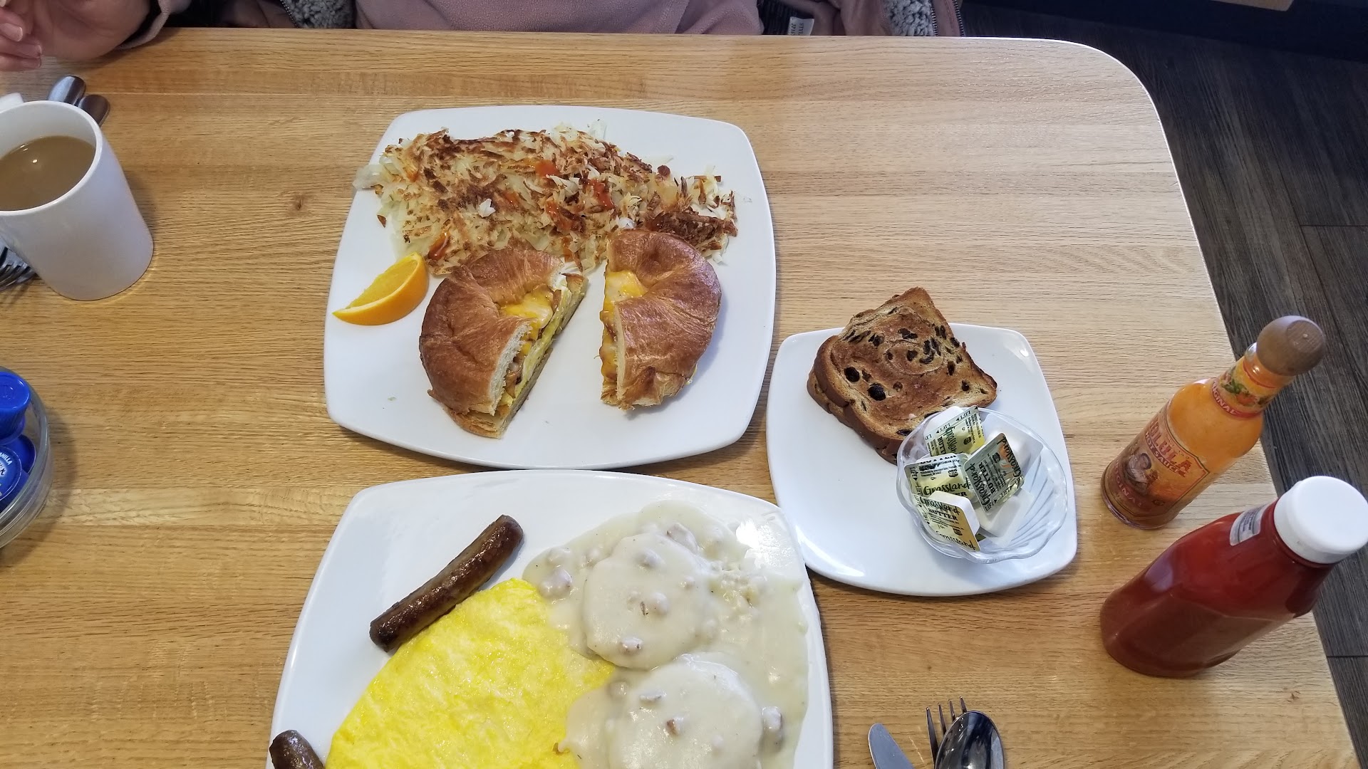 Since my last visit a few years ago, this place has been renamed and renovated. Before the booths, chairs, countertops, and lighting fixtures were outdated. Now, with the renovations that have been invested into Eggstablished, the place looks great! When we walked in, the dining room was completely full. The kitchen was busy and the staff was constantly moving all around, serving their guests. It felt great to see this local business booming, having a constant flow of people entering and leaving.