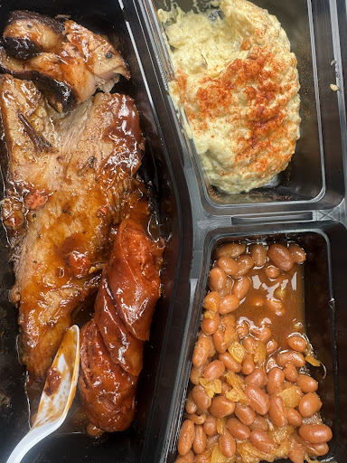 so it’s been a year since I’ve been to this place I decided to give them one last try and see if they got their act together but nope. today I went got there at 4:30 PM. They had no brisket. Of course I knew that. Lmaoo So I look on the menu that is outside of the building and it says they serve meat by the pound (false) I asked for 2 pounds of rib tips. The lady tells me they only sell rib tips by the plate. I’ve never heard of such a ridiculous thing in my life.