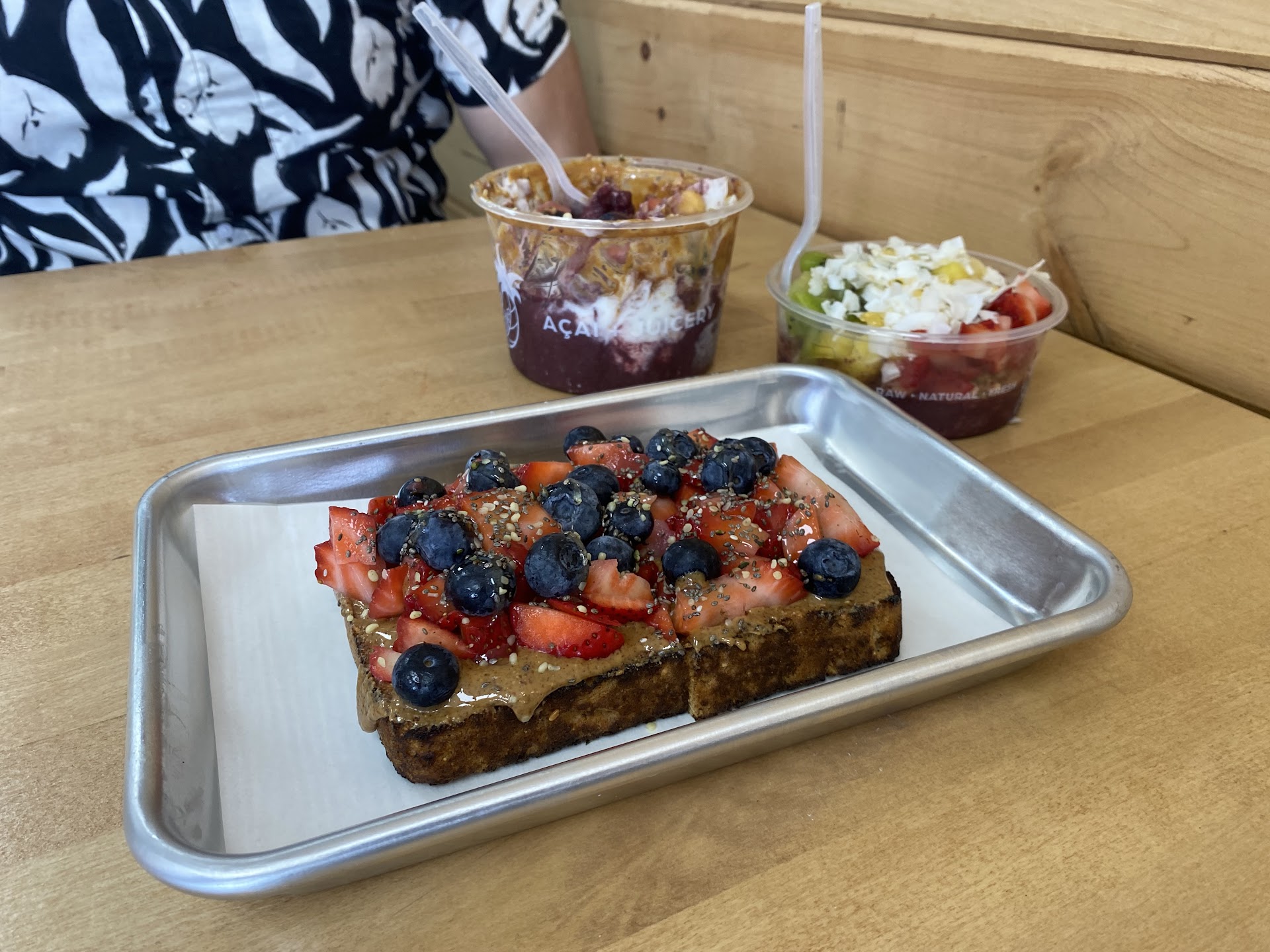 We have been here multiples times and thereās always ample seating with a lot of people enjoying 3Natives both inside and outside. My partner and I had the Tequesta Bowl, the Almond Berry Toast and JBBowl. Everything looked freshly cut and made to order, with nothing frozen or fake.