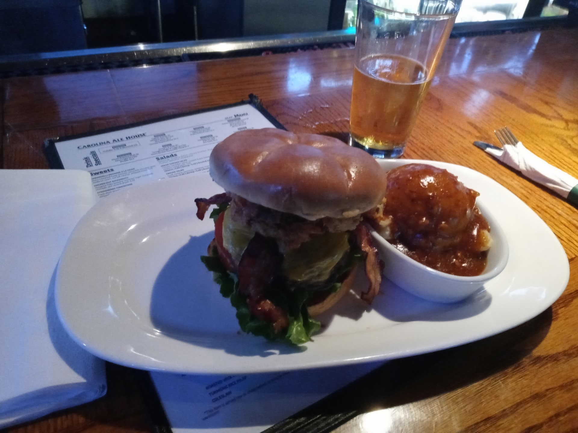 Ā Ā Ā Read moreNot a good experience! We went to the ale house yesterday. My husband got in before I did by amount 5-10 minutes. By the time I got in with the kids, no waiter/waitress had arrived to the table yet. We waited over 20 minutes to get waters or a high chair. My husband had to walk to the bar to order a beer and was almost done with it by the time someone came to assist our table. By the way the table was sticky and had empty ketchup. We placed an order for 12 wings as an appetizer and received 11. We let her know so the kitchen was aware, they brought us 2 more wings which we did not touch because you could see the wing feathers all sticking out of it! After we ordered our meals we had to ask for silverware. The cooks or the helpers who brought the food to the table continued to place the hot plates in front of our toddler in the high chair instead of trying to place in front of the person who ordered it like any restaurant normally does. My husband ended up getting up to ask a manager for silverware whom then just pointed to a hostess stand so my husband could grab it himself! The manager saw us looking around multiple times for help. At the end they gave us a complimentary keylime pie for the inconvenience, which was tasty! The manager brought it to us and didn't even say a word. He also looked at a stack of dirty plates in front of me and looked at me as if he didn't know where to put the dessert not tried to take the dishes and then he walked away. I see exactly why the staff is the way it is because the manager himself is terrible and unprofessional. This establishment has potential but it needs much...