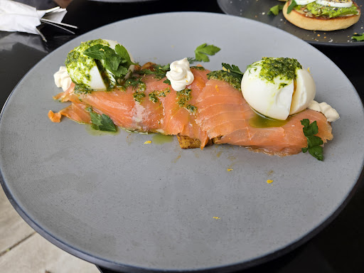 The menu here balances classic brunch staples with a few unique twists, and almost everything we tried was well-executed. We shared three of their most popular menu - Smoked Salmon breakfast, Eurasian Eggs & potatoes, and Californian Griddle. The Smoked Salmon breakfast was simple but satisfying. The smoked salmon, pesto, and crème fraÎche worked beautifully together, though the home fries were slightly undercooked.