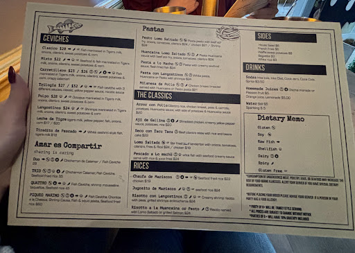 I came here today, August 9, 2025, for a late lunch (around 14:00). I have eaten Peruvian food before and loved it so I was introduced to this place by my mom! They seem to have a lot of 2 seaters inside, but they do have 4 seaters both inside and outside.