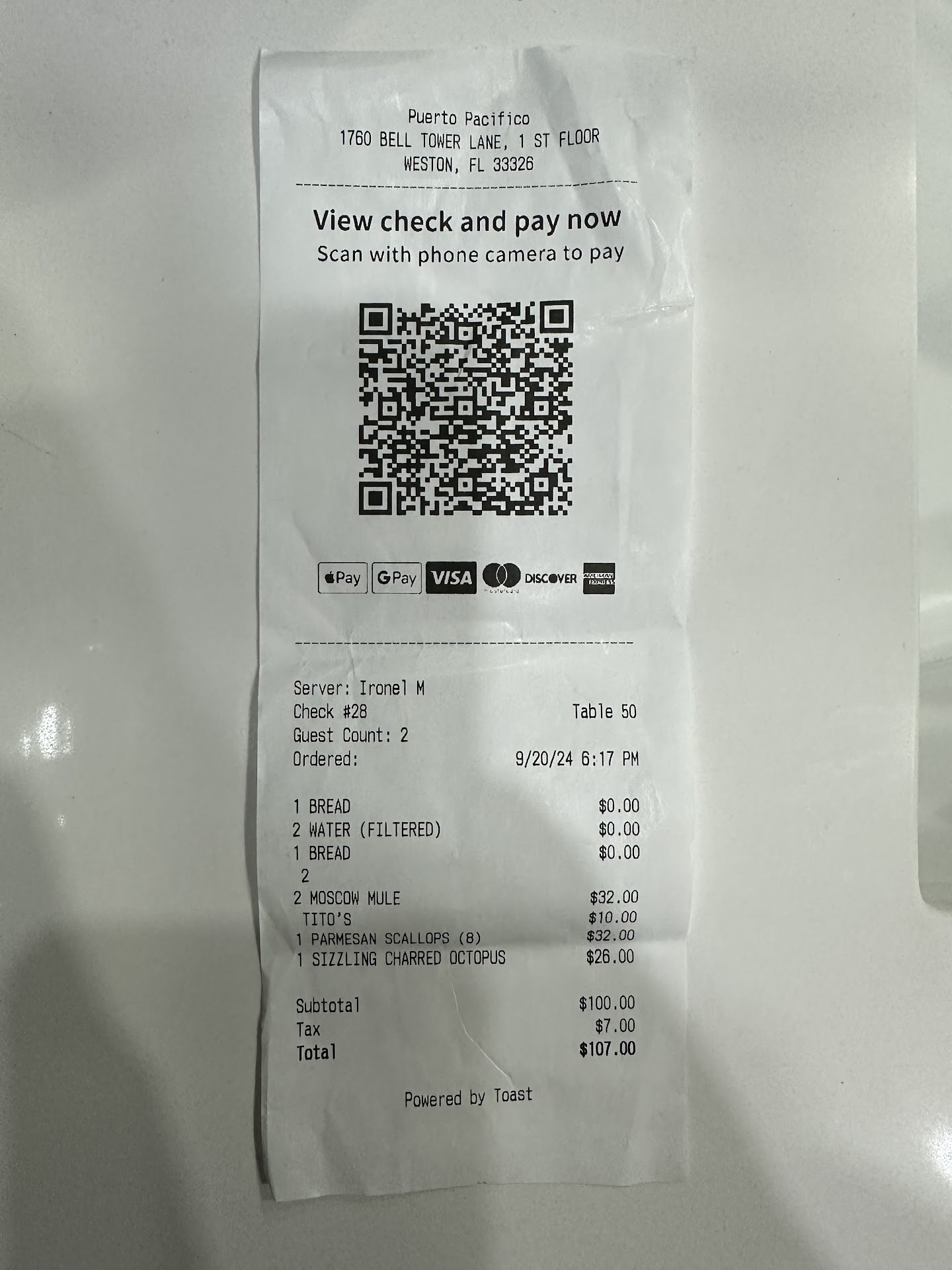 Read moreThis is the first review I have ever written. Usually if I had a bad experience I just would chalk it up to experience and not go back. I made an exception in this case because I really want this restaurant to make it as it is close by and has potential. There is a Spanish saying that when the fish smells it starts at the head. I believe this is the case. With better management and more attention to details it could be turned around. Highlights: grilled vegetable side. Cheese cake and the 4 leche dessert. Low: wrong appetizer delivered to table- we did not know. Server said it was delivered by mistake- but enjoy as it was on the house. Luke warm fish was served with ice cold sauce. All easily corrected with a little attention to detail. When all finished I asked for the bill. Was given a tablet with just the amount:$177. No problem was expected for 2 people. FYI- no drinks- I asked for an itemized bill- noticed that the appetizer that was “on the house” was on the bill. When I questioned the server she sheepishly apologized and said the manager said we had to pay. Also a $1 charge for a glass of water. Food: octopi skewer is inedible. Sea bass was fair at best. Shrimp and garlic appetizer was decent. Desserts fabulous. In summation see my...