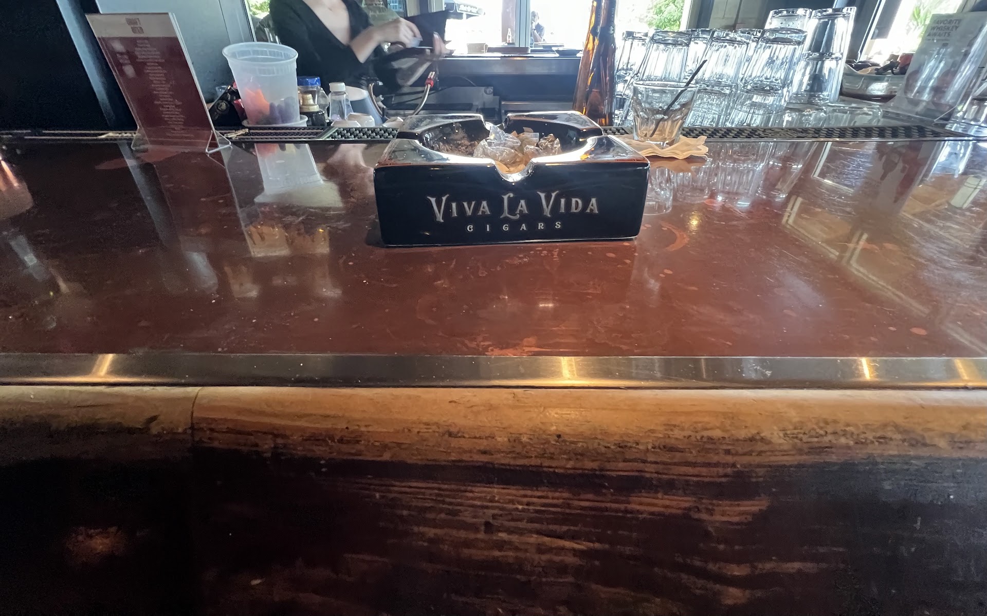You have a beautiful facility with a great humidor. A great selection of cigars. The patrons are fantastic, as I have had great conversations with many of them. All of the bartenders have been polite and courteous. But please have your bar staff be more attentive, and just take that extra step towards ensuring everything is clean.