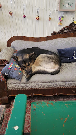 Read moreStopped in with my wife & friends while visiting the area. The vibes are super eclectic and cozy, and we were immediately greeted upon walking in! Our barista was super sweet, knowledgeable, and genuine. Easily the kindest barista I've ever had. He brought our drinks & bagels out to us when they were ready and thanked us for visiting! The coffee was good & the bagels & pumpkin roll were yummy! The bagel bar is such a good idea. We were just planning on running in for coffee but ended up hanging around for a good while because we loved the atmosphere so much! Also, Georgie the shepherd was super sweet. Would highly recommend this place to anyone traveling in or...