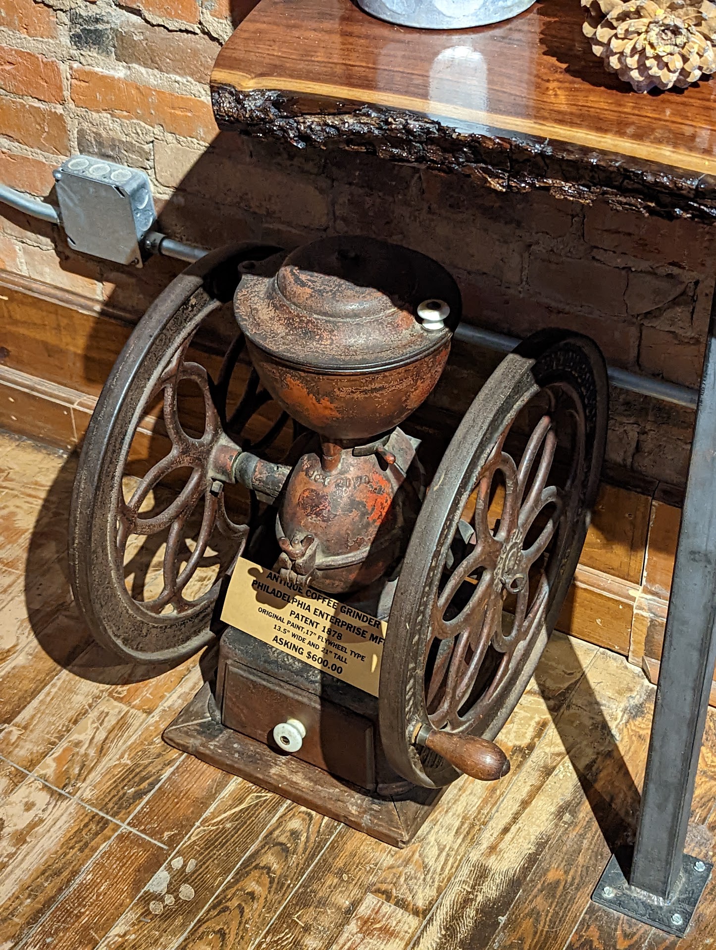 I absolutely adore all of the taxidermy critters dressed up for the holidays. There's some really neat historical artifacts near the area where you order your drinks including a timeline of the building, an antique coffee grinder, and an alarm that will sound if you touch the furs 👀