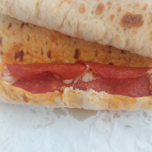 Second: A flatbread was stuffed with only 4 larger pieces of pepperoni and a dribble of cheese that I had to search for to even see. No dipping sauce was offered. I was offered honey dipping sauce for the pretzel, which I declined, as I'm diabetic. Nothing was offered for the pepperoni "dipper".