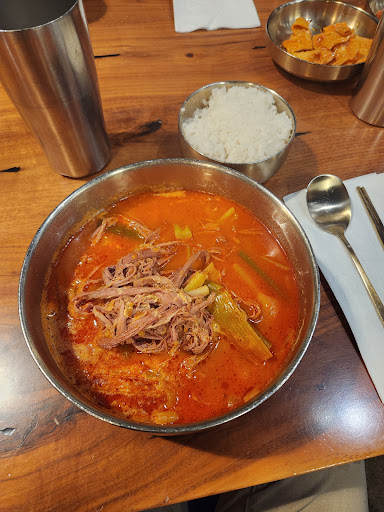 Read moreThe first thing I want to say is the service here is SO GOOD. I would day it’s rare to find a place with good quality food AND amazing service like this. The people are all so friendly and attentive - it was nice to be able to eat good food and also be surrounded by good vibes. We got the yukgaejang ramen and yukgaejang soondubu. Both were flavored very well and we’d order them again. The kimchi mandu was not for me and I probably wouldn’t order them again but the side dishes made up for it!! The kimchi is perfect for pairing with soup. It was perfectly ripe for me and I usually don’t like fish cake as a side dish but I couldn’t stop eating this one here! Overall, we will be back...