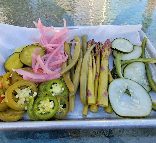 The food was fantastic. I got the pickle platter and their Black n Bleu burger. The burger was well cooked, with a heaping of carmelized onions and blue chease on a toasted potato bun. It came with some fantastic fries, perfectly seasoned. Great proportions too, so it's worth the extra dollar or two that you might pay versus elsewhere. A really great entree. The star of the meal for me, however, was definitely the pickle platter - pickled carrots, green beans, asparagus, onions, and more, all with different flavors and seasonings added. It was so good I bought three containers to bring home! The pickle platter is a must try if you go by.