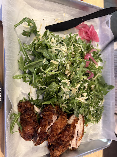 The food: Despite waiting for two hours, the food arrived hot. My companions ordered the burger w mushrooms and the backyard burger. I ordered the fried chicken sandwich. The fries were excellent! Nice and crunchy. My friends said ordering them “backyard style” was excellent. The burgers were flawless. The fried chicken sandwich was crispy but definitely on the burnt side. The additional downside is they clearly used a chicken thigh instead of a chicken breast. It made it a bit fattier and harder to eat. Despite the crispy crust, I most likely wouldn’t order that again. The homemade pickles were a nice touch.