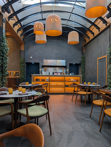 Read moreThings to know. Valet parking only. Like Artisan. Hold your nose as you enter the hotel. They have a "Signature Scent" that reminds me of "old lady" perfume. It's so strong that you can taste it on your tongue as you walk in. Thankfully not noticeable in the restaurant. The space is wonderful. There's a lot of energy in the building. The decor is very nice. There is an outdoor space as well. The service was very good especially since they're new. Some misses of no consequence. Very nice people. The menu is great. Lots of choices with good descriptions. The drinks were quite good. The food was more bland than expected and just misses the mark. We had the hummus, the fig salad and the chicken. The pita and hummus is far superior at Esh. Not up to the Artisan or L'Escale standards. We will definitely go back and try some other dishes for sure. Please, get rid of the "Signature...