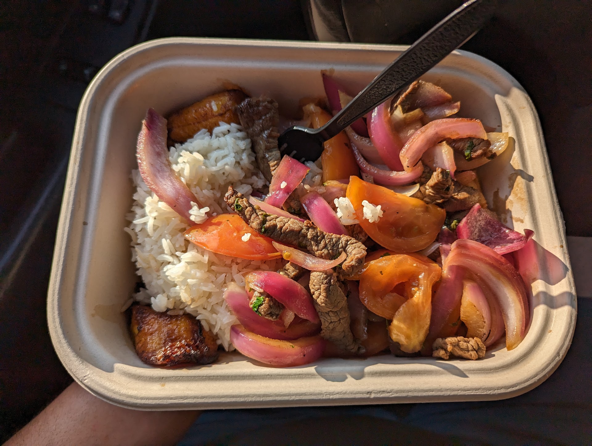 I really hate to give this place a 2 star review, but I was not impressed by what we ate here for the cost. We ordered 2 lomo dishes. Was super pumped to have found this place because it was near to us. I will say it was very easy to order online and it was ready when we pulled up. Now for the food, the portion size was okay, but not great for $18 a plate. They also offer different cuts of meat that would cost more. We opted for the top sirloin. It was nicely cooked and tender, but had no flavor to it. I think the reasoning for this could be because of their packaging. I have added photos of what I'm talking about. They use a very thin paper-like container that absorbs all the juices that the lomo naturally has. The container also starts to fall apart as you are eating. This is a big issue because this is a take out place. The plantains are five out of five. That was the best part of the dish. The rice was on the dryer side which didn't help the plate. The onions are a great touch, but there are too many of them. I'm not an expert in this dish just giving my opinion. Tomatoes are also cut on the bigger side. Overall wouldn't pick this as our go to spot. The major turn off for us was their sauces. For some reason they tasted like straight pickles which is not a thing that they were used to when it comes to Aji. Had that not been the case it might have given it a better flavor. Again I hate to give it a 2 star because I want this place to be a 5 star, but it's just not. I'm sure their other plates might taste better, but if you can't get the sauce and the lomo right it does not give me much hope for the rest...
