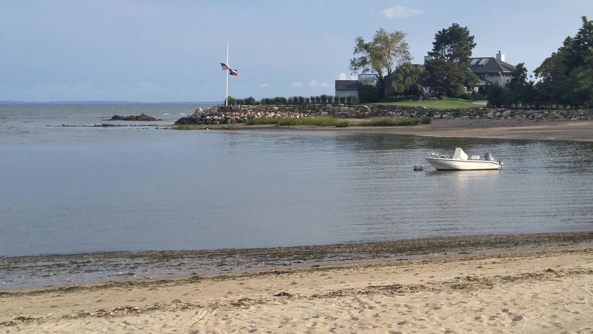 We ordered a large pizza takeout for lunch from there and it was good! They had a few picnic tables on their side patio. There were umbrellas so it was shady on a hot summer day to dine outside. The service was great and the pizza was huge. It came out fast, hot, and delicious; we ordered a large pizza with half pepperoni and half mushroom and caramelized onions. I loved the mushroom and caramelized onions portion; it was sweet and savory from the onions and cheese. There was a small parking lot and the place was popping. It's a great location because it's across the street from Compo Beach and surrounded by a neighborhood. It appears to be the neighborhood go to grocery, deli, and pizza restaurant. Overall, I recommend it and a wonderful asset...
