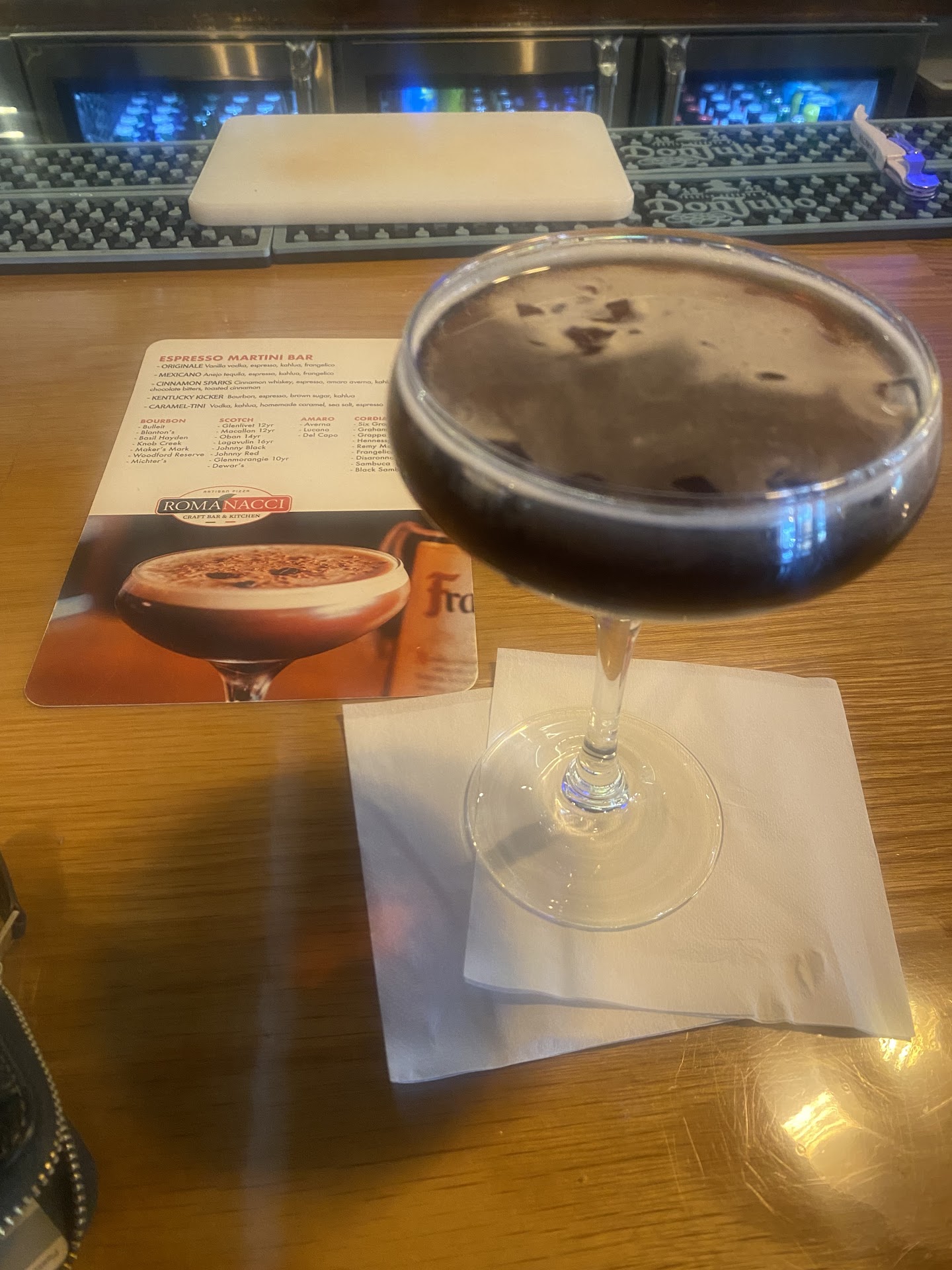 I noticed an espresso martini menu in the window which lured me in. I ordered one & the bartender said she never heard of it & didn’t think they had it so I just asked for an original while I waited for the train. The drink came out so quickly there was no way an espresso shot was pulled and if it was batched it’d have to be watered down with simple syrup.