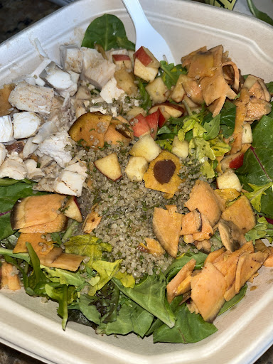 Read moreI am probably the biggest fan of sweetgreen you could ever meet. I love it so much and I get it at least once a week. But this experience has made me want to never eat here again. I ordered a bowl on Uber Eats, and when it arrived, the bread and the DRESSING was missing. This was so disappointing. I love Sweetgreen so much and I recommend it to everyone. If it were just a topping that they left out it would be disappointing but not enough to make me so upset (in fact, last time I ordered from this location they did forget the tortilla chips on my Chicken Avocado Ranch bowl). But the dressing is literally the most irreplaceable part of the salad. This was so heartbreaking and I regret ever singing the praises of this...
