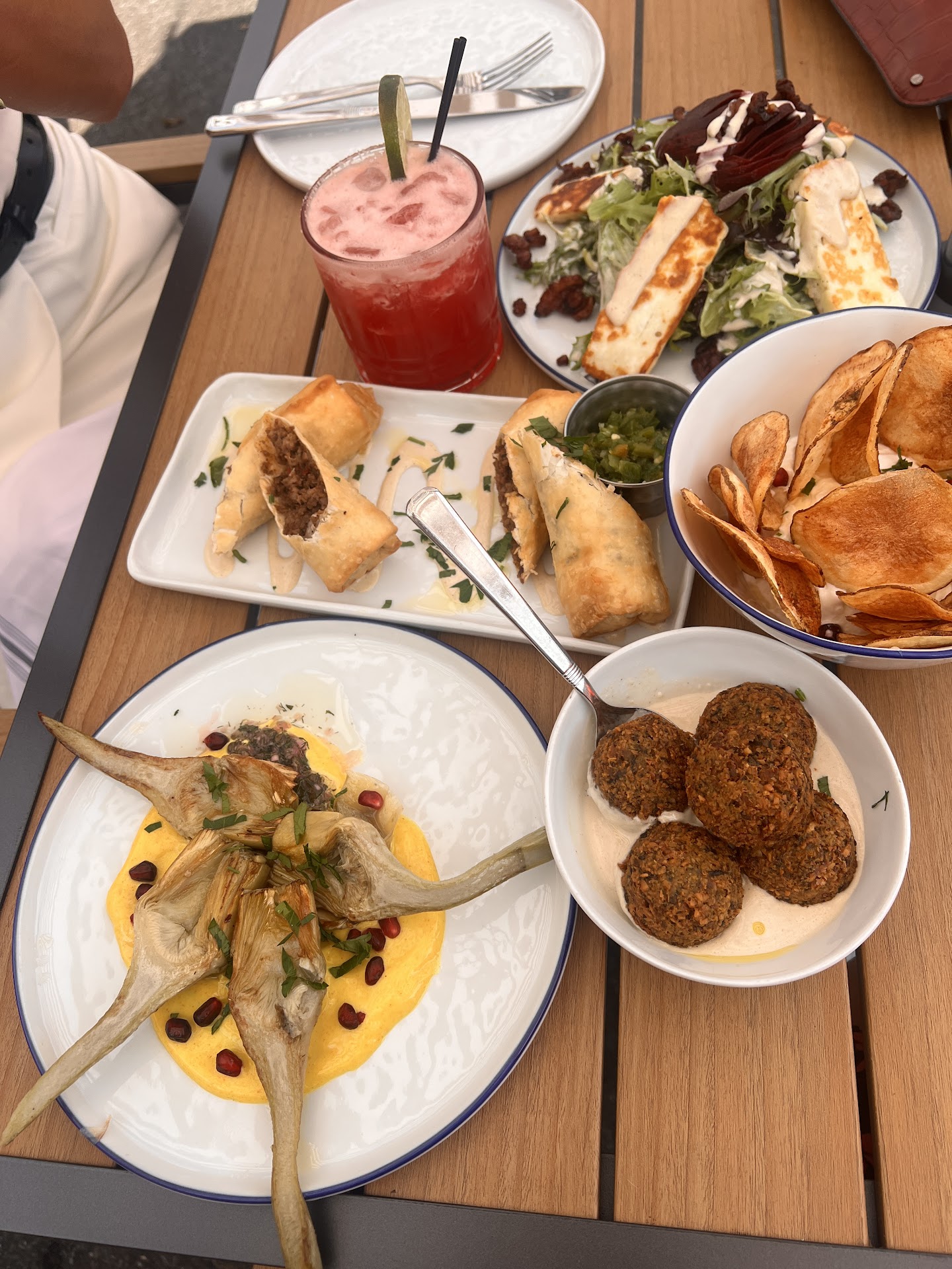 Read moreWe had the opportunity to enjoy a unique and pleasurable experience at Blondinit! We took the liberty to try a plethora of items. If there were more capacity in our bellies then we would have ordered more. The Moroccan Cigars, baby artichokes, whipped feta, halloumi cheese, falafel and Schnitzel sandwich all had different flavors and all equally enjoyable. The Hibiscus Margarita was freshly made and top notch. 👌 The dessert….oh the dessert…you MUST get both the chocolate cake and pistachio cloud of goodness. I’m not even a pistachio person and it knocked my socks off. Super light and tasty. The chocolate cake made me shed a tear of joy. Needless to say, it was a great experience and pure delight. Thank you to the lovely owner (Inda) who spent some time with us to make it a great time. It’s always nice to see owners getting their hands dirty and helping the wait staff and interacting with guests. You don’t see that too often anymore. If you are considering this spot, don’t hesitate. We will be...