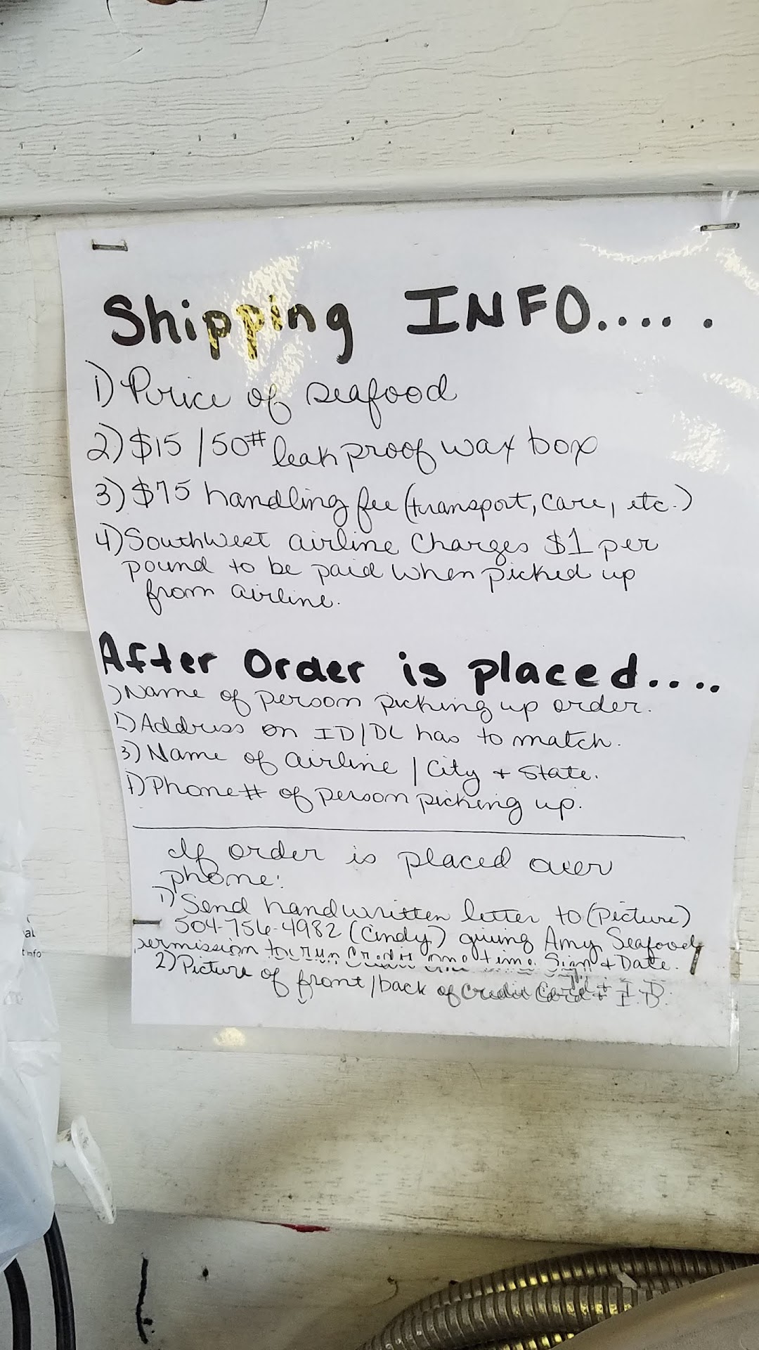 We stayed in the Bayou Seg State Park for 4 nights and purchased shrimp and crabs, crawl fishes every day by different group members from Amy’s seafood market. We found out that the quality of the shrimp and crawl fish were not consistent. There was only one day which had very fresh shrimp and we were able to get the black line easily by tooth pick. It means that the shrimp is really fresh. We steamed those and the way we cooked needs fresh shrimp to make it taste fresh. However once the shrimp was not fresh and we can easily find out. So I guess you have to constantly try different days and let them know you will come back to get really good shrimp? I don’t know. Also the heads of the shrimp were separated from the bodies. I don’t know why, but it definitely was some tricky on it. Some day the heads were on and some days they don’t. I can only...