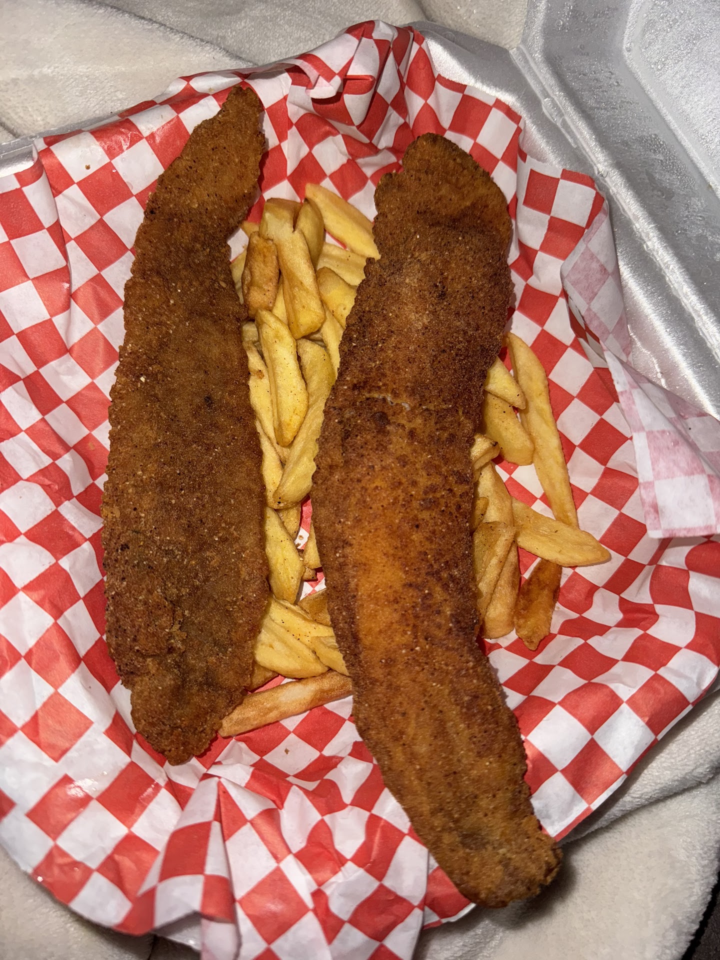 Read moreOrdered the blackened fish, grilled shrimp and salad and was utterly disappointed due to the fish was still raw in the middle and the shrimp tasted rubbery. Being that I was in town for Mardi Gras and had limited options in the area, I was highly disappointed. Waitress had cooks cook fish longer but the fish still didn't taste right. But expected when one tries to re-cook the same fish. Waitress stated that this was a popular specialty and that I was the second person who didn't like it. Also, lackluster in the customer service department as well. As an avid traveler and more of an upscale food connoisseur, this must be a mom and pop's restaurant for locals and nothing like Pappadeaux. The salad what not impressive either and still wondering who utilizes sandwich pickles on top of a salad? Literally hoping that I don't end up getting sick from this place from eating half...