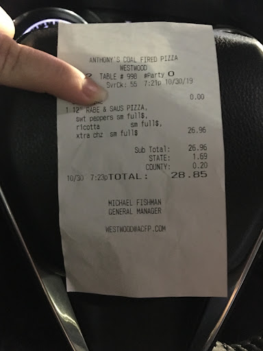 ACFP was my go to for a really long time, but in recent months they have gone down hill in ALL areas. If a favorite restaurant has an off night, I am generally prepared to let that go. But when having an off night seems to be the new standard to which they aspire, then I feel that is not acceptable. A month ago my husband and I ordered 2 pizzas for pick up. When my husband picked up the pizzas it was clear that either there was no manager on duty that night, or the manager was simply not doing his / her job. The chef was on his phone while cooking, the restaurant was in disarray and despite it being practically empty the order took 45 minutes. After all that, the pizzas were inedible! So much so I emailed ACFP to give them some feedback, since I figured they would appreciate that more than a poor online review. They were quick to respond and offered to send a giftcard, giving their assurance that our next experience would be better (incidentally the giftcard they sent did not cover the cost of our original order, but I was happy with the gesture none the less and prepared to give the restaurant another try). Fast forward a couple of weeks and we place another take out order for 2 pizzas. My husband had asked to substitute the hot peppers for sweet peppers on his pizza, but when he checked his pizza before leaving the restaurant found that they had indeed put the hot peppers on. Rather than ask that they make another pizza he asked that they simply remove them and replace with the sweet peppers - it took 15 minutes for this to happen. I had ordered the burrata pizza, and when he arrived home with it I found it had been made with NO BURRATA?!!? I once again wrote to ACFP offering them my private feedback, but letting them know how dismayed I was by the lack of care and attention shown by the staff at their Westwood location. I also enclosed a photo of my cheeseless pizza. This time their response was decidedly more brusque, with barely an apology made. Unfortunately it seems to me that their total disregard for customers and lack of pride in their product comes from the top down. There are plenty of other, much better options for pizza in the area, and I will not be frequenting...