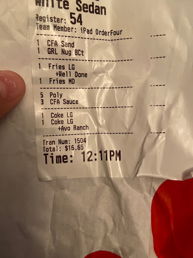 Ā Ā Ā Read moreThis is not my favorite location by any means but it is convenient after picking up my kids from school. I can go to several other locations and order a Kids Meal with a CFA Sandwich. While it not on the menu, other locations ring it up while this one acts like it is an act of Congress. Today, they messed up my order and just put it in as a CFA sandwich meal. That was fine. I have to pull up and wait for my Order. Again, nothing wrong there. After getting my order, I drive the 15 mins back to my office only to realize that they did not include two of my entrees. I was working against a deadline at work so I call them to let them know what happened. I spoke with a shift leader named Tyler. Tyler was apologetic and said that I could come back later to get my missing items. I finish work and make the trek back to get the missing food to complete my meals that should have been enjoyed 1.5 hours prior. The young man who brought the food to the car asked if I wanted sauces. I ask for Barbecue and Honey Roasted BBQ. He brings Honey Mustard and Honey Roasted BBQ. At this point Iām just like āit wasnāt meant did them to get his right today!ā I drive home only to open the nuggets and see that 6 of the 8 are burnt and barely edible. My son could have gnawed through them but he chose not too. I called back and spoke with Brooklyn. She absolutely should NOT be answering the phone or handling ācomplaintsā. I told her my experience and she said āso did you just call to tell us about our mistake or do you want to come back?ā No, Iām not coming back. She proceeded to thank me for my call and hang up. Ridiculous. Iām not sure what I expected but CFA is one of my kidsā favorite spots. I like most locations because of their customer service. This location is doing a disservice to the CFA norm...