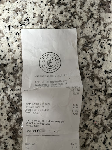 101223 My food is too salty. I never had this problem with Chipotle before.
