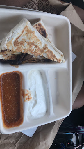 Upon receiving the order, the quality of the food was extremely disappointing. The quesadilla was severely burnt and unappetizingly soggy due to inadequate salsa packaging.